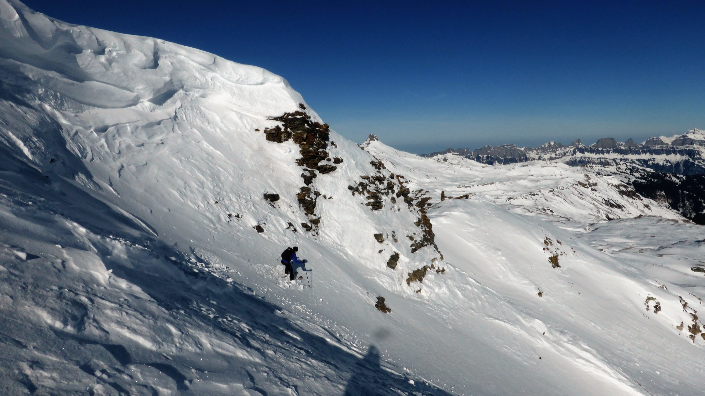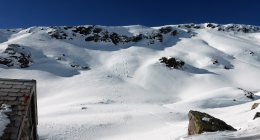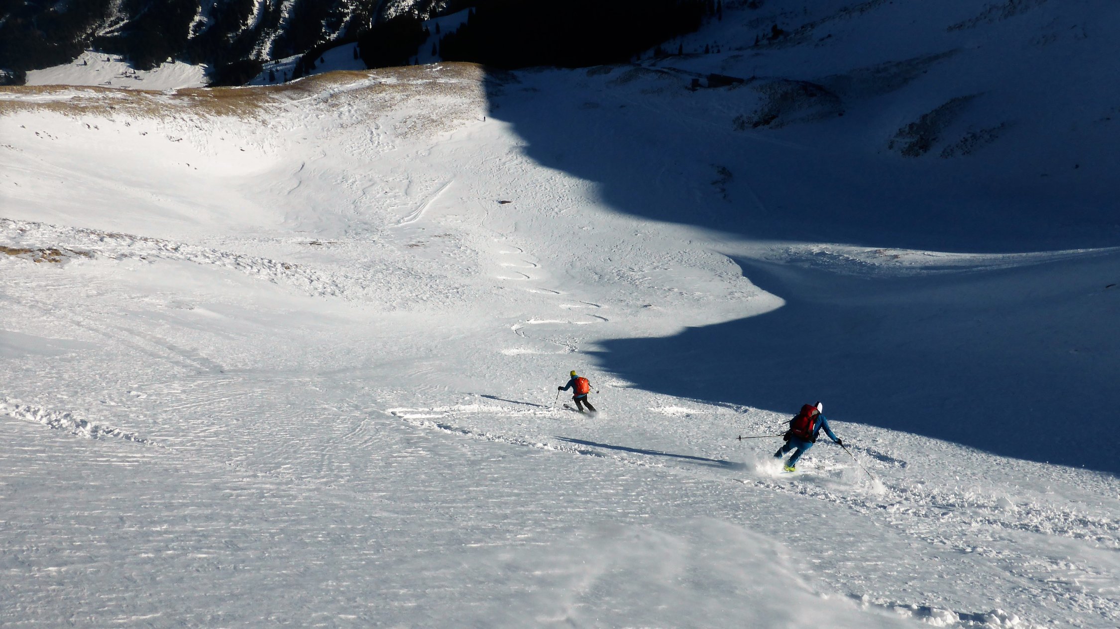 Sehr unregelmässige Schneedecke, Hart, Pulver, Windpressschnee und wenig Nassschnee