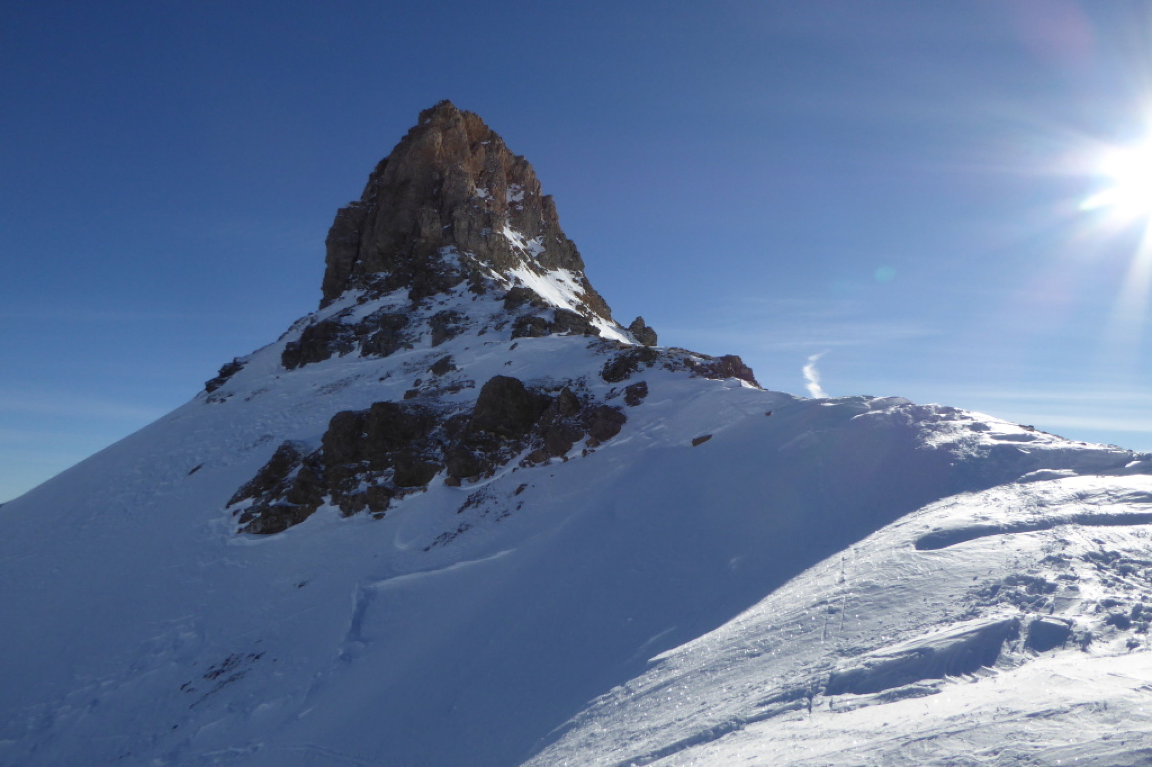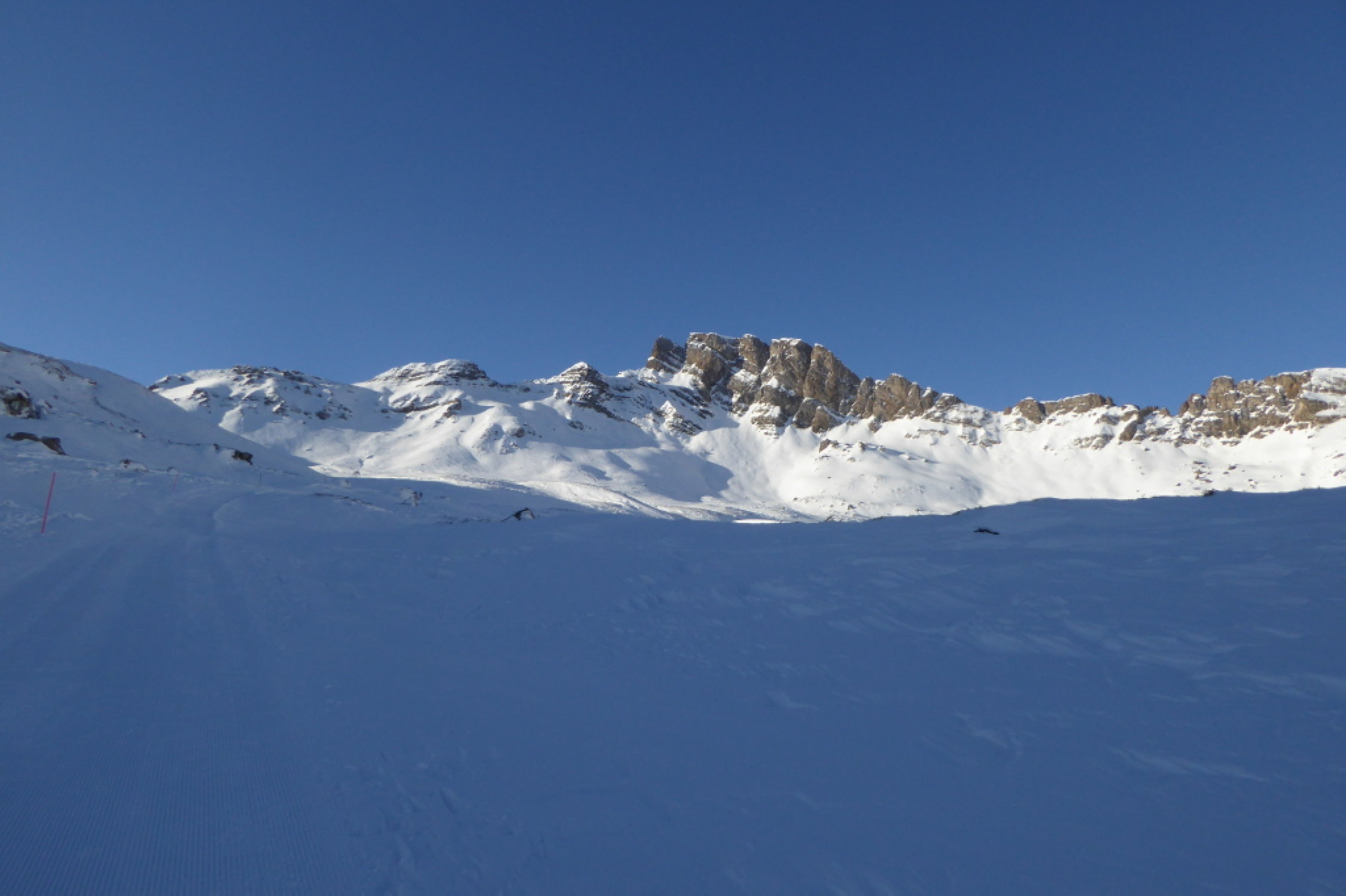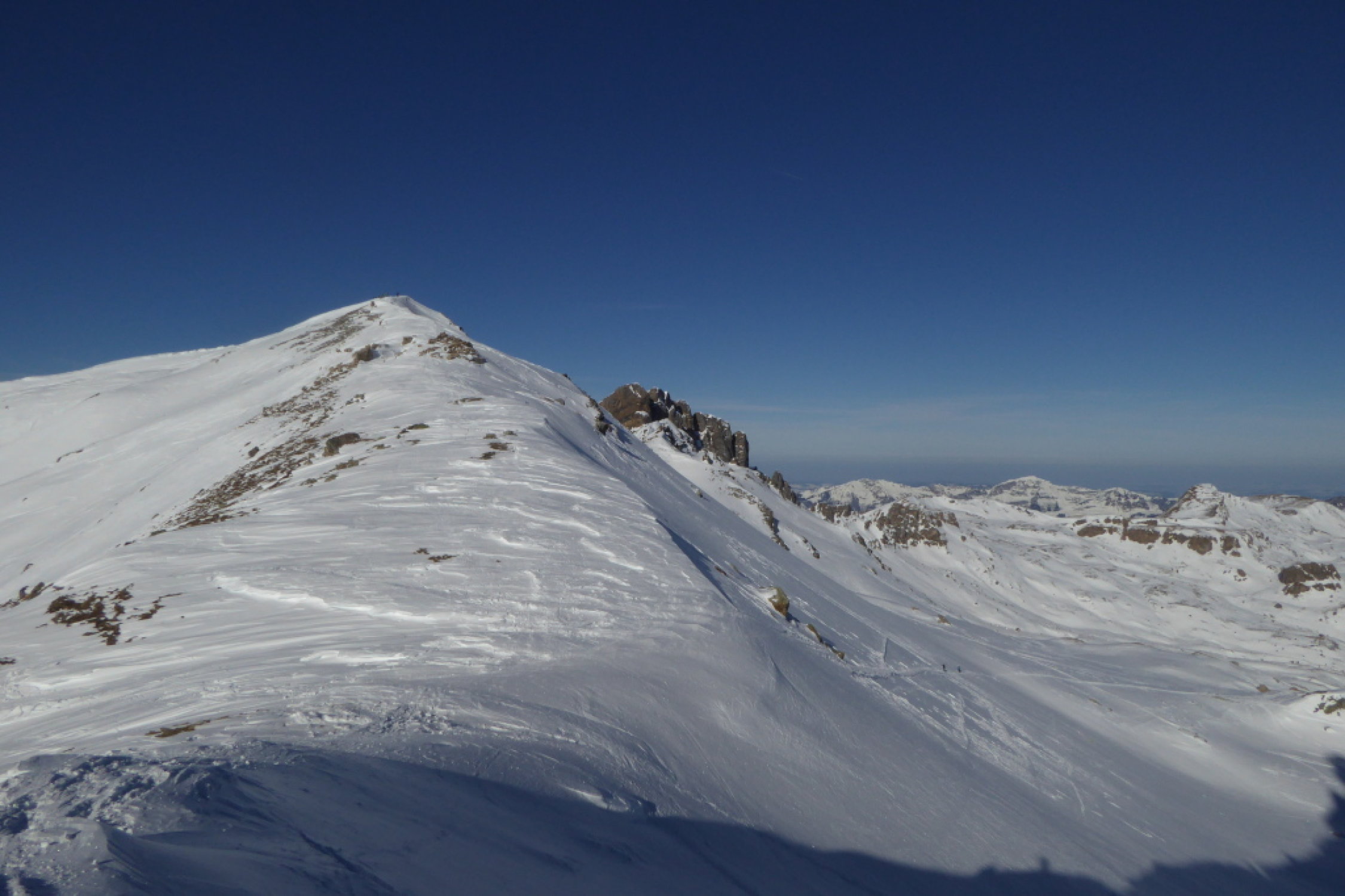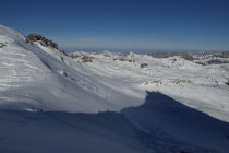 Ab Pt. 2075 in südwestlicher Richtung sehr harte Schneedecke und keine gute Skispur. Ab Schafläger ist wieder eine Skispur vorhanden bis zum Spitzmeilen.