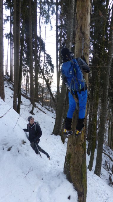 Nachdem über der Baumgrenze "alles" verblasen und verharscht ist bzw. bei schönem Pulver Steinkontakte nicht zu vermeiden sind sowie die tollen Hänge bis zur Baumgrenze meist verfahren sind, da haben wir beschlossen, ohne Schi etwas zu unternehmen, was uns allen tollen Spaß bereitete :-)