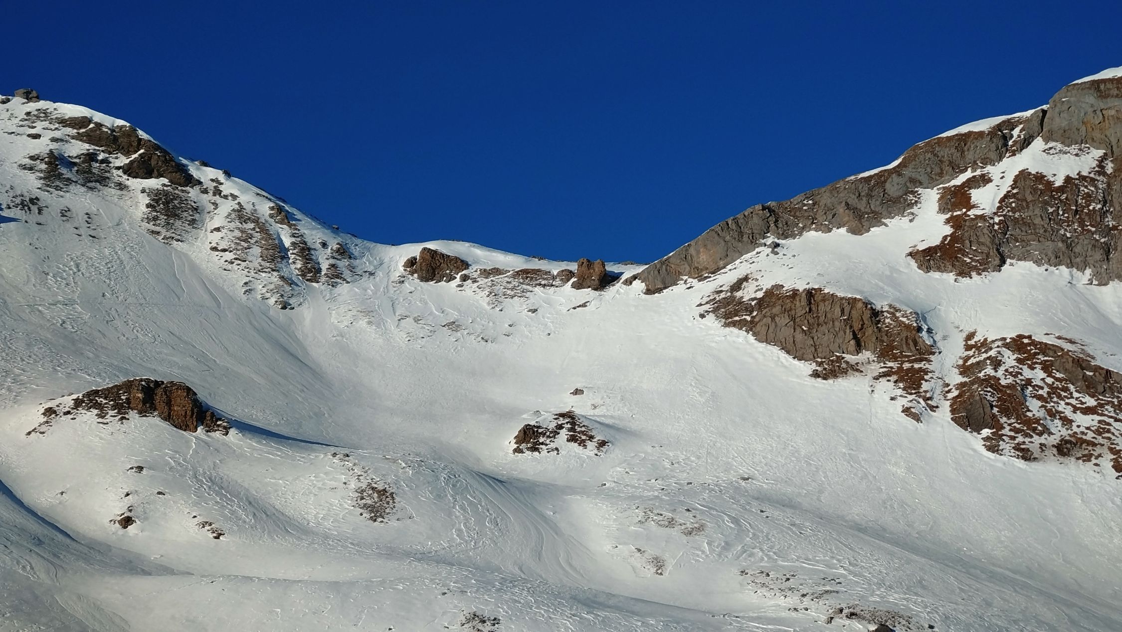 Auch am Donnerstag über den Mittelgipfel vom Strubel ab Engstligealp war nicht schön: fast alles mit Harscheisen hochsteigen, und in der Abfahrt zuerst viele Zastrugis und anschliessend Karton in sämtlichen Härtegraden.