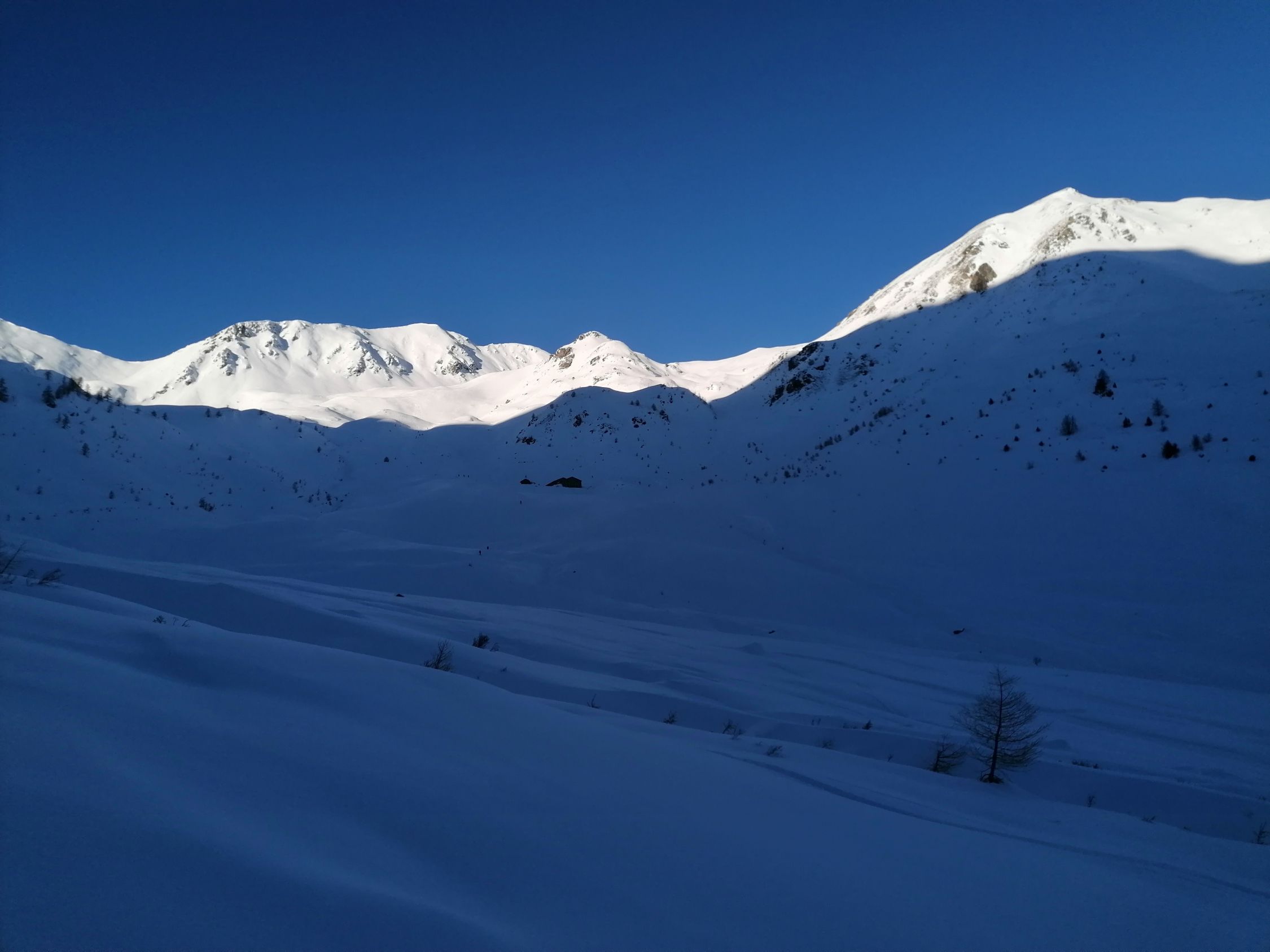 Bleibt weiterhin gut. Der Aufstieg durchs Valle de Vertosan erfolgt I'm Schatten. Es ist hier ein Kältesee, und der Pulverschnee bleibt lange erhalten.