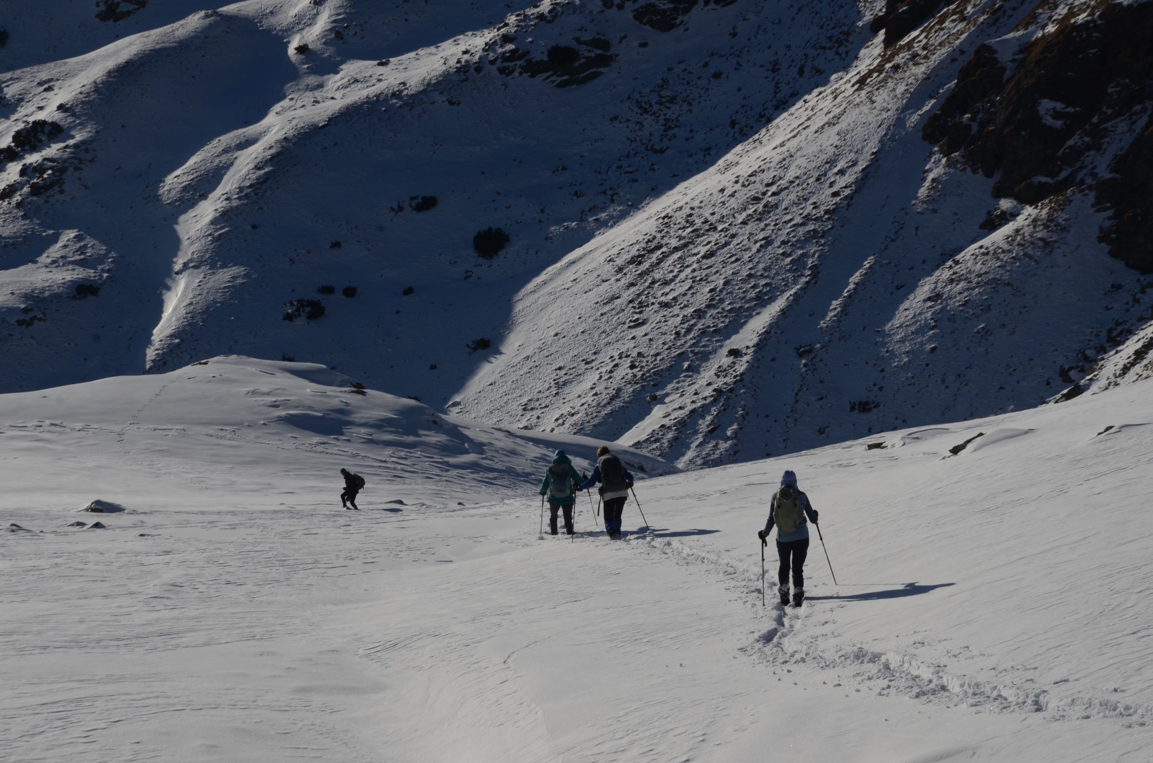 Der Schnee wird ab 2200m unterschiedlich hoch; von ein paar cm bis Knietief.