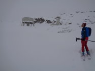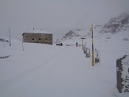 Die Route ist denkbar einfach - ma geht auf der Strasse bis zum Hospiz, hie und da kann man eine Abkürzung einlegen. Das Hospiz ist geschlossen, daneben befindet sich jedoch ein kleine, öffentlich zugängliche Holzhütte, in die man hinein kann. Abfahrt wieder auf der Strasse.