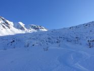 Im Aufstieg bin ich der Strasse entlang und erst anschliessend musste ich auf dem Wanderweg die Ski ca.15 Min. tragen wegen aperen Stellen.Nachher auf guter Spur zum Gipfel.Die Abfahrt nach Ulrichen bis zum Wald war erstaunlich gut.Nachher auf dem breiten Waldweg und der Passstrasse nach Ulrichen (hart und wenig apere Stellen).