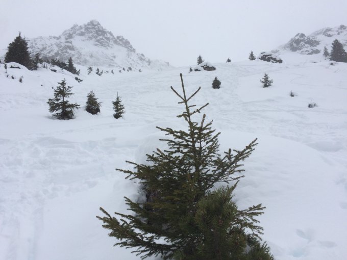 Im Aufstieg alte Lawine in Abfahrtsvariante bei ca. 1500m über Vollsporaalpe gesichtet (s. Bilder).