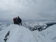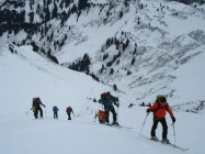 Bis 1.700 m Harschdeckel vorhanden. Gipfelhang teils lockerer Pulverschnee teil