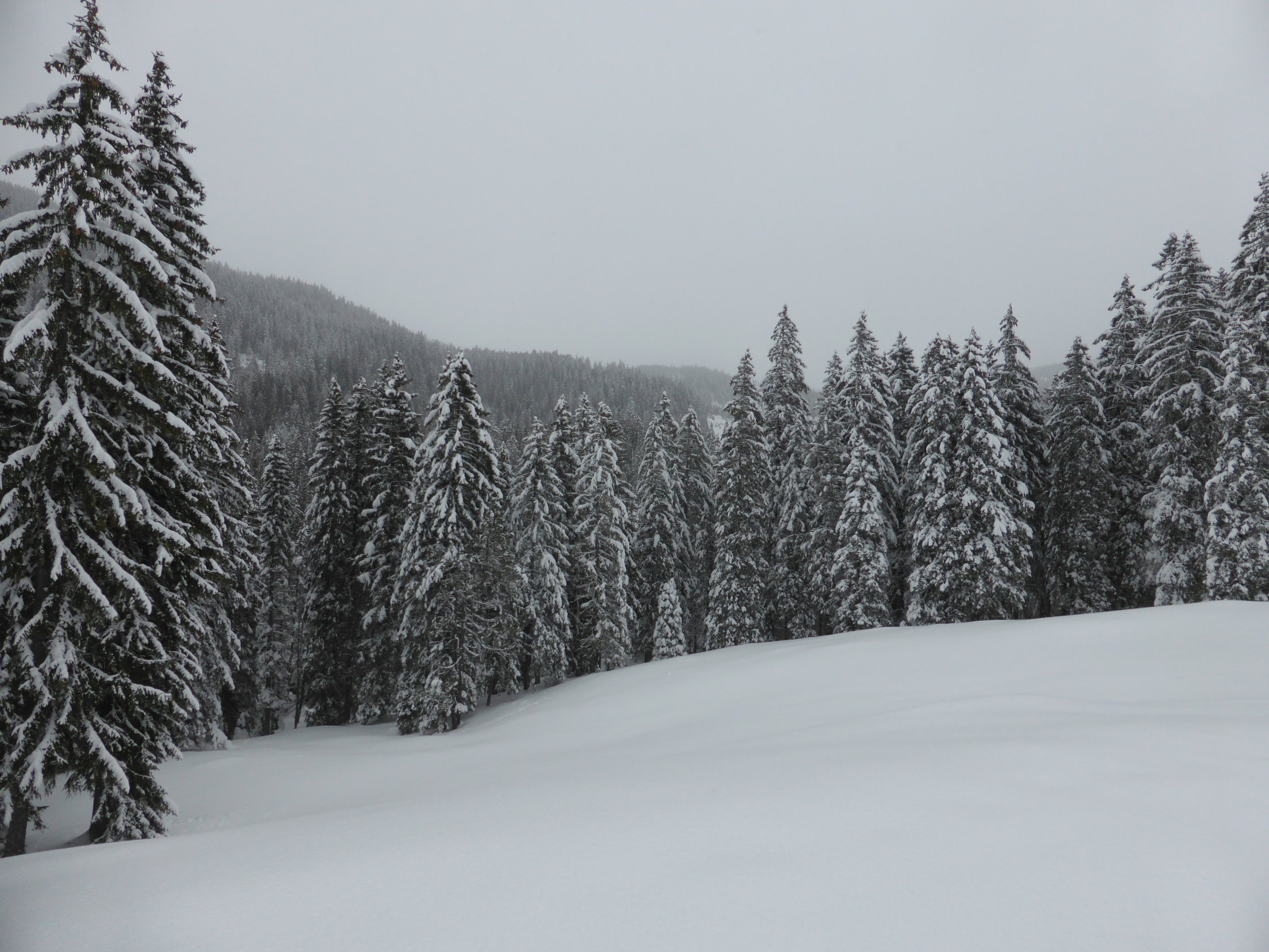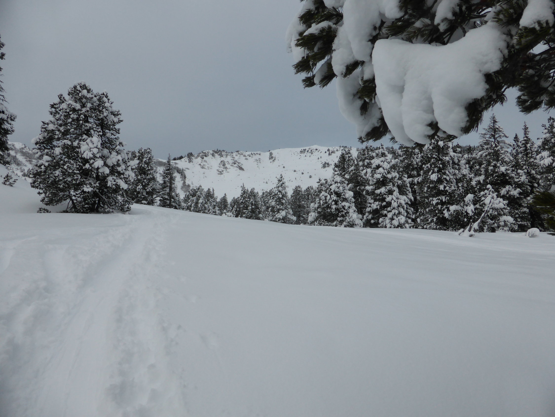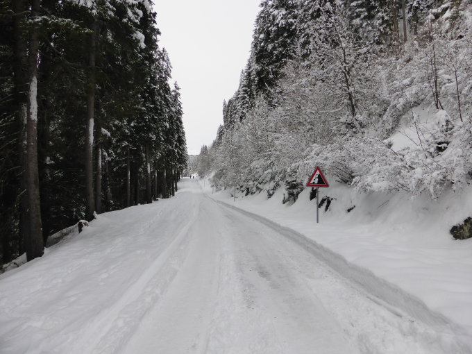Schnee: Im Aufstieg Pulver(20-35cm). In der Abfahrt bis Stäldeli 1373m ebenfalls Pulver in gleicher Menge. Danach leider immer wie nasser jedoch nirgends Steinkontakt gehabt. Leider hat der Regen vom Wochenende derart stark dem Schnee zugesetzt, dass das Strässchen ab Stäldeli mehrheitlich schwarzgeräumt war. Entsprechend mühsam war das vorwärtskommen.