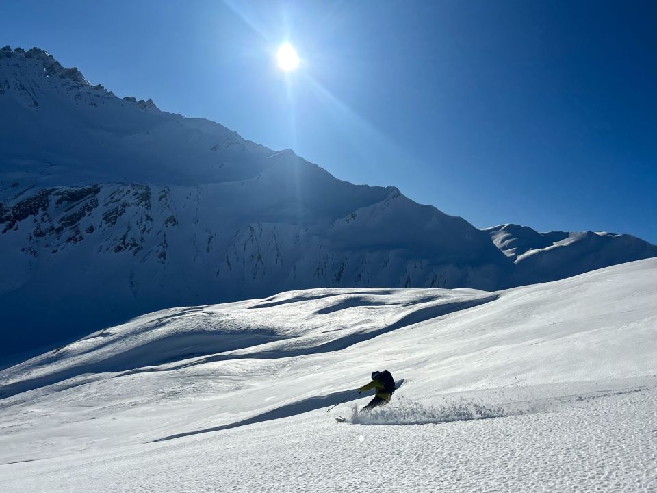 Ausreichend Schnee, kein Steinkontakt und herrliches Wetter. Abfahrt über La Peule fast firnähnliche Bedingungen.