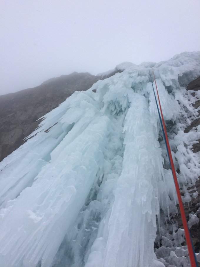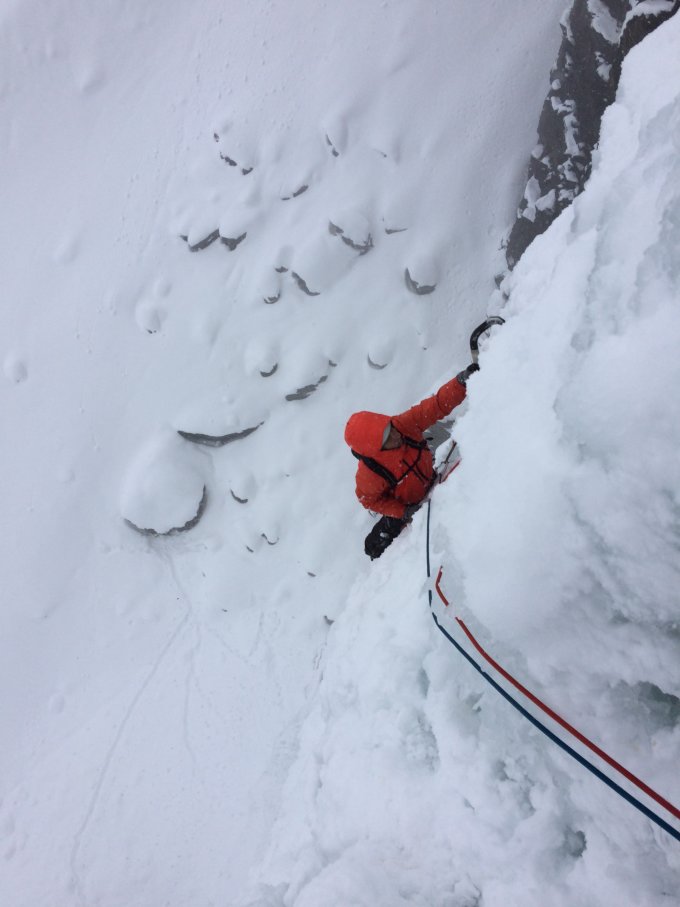 viel Schnee, akzeptable Wasser, 3D-Klettern, quasi-röhrig (3. Sl)