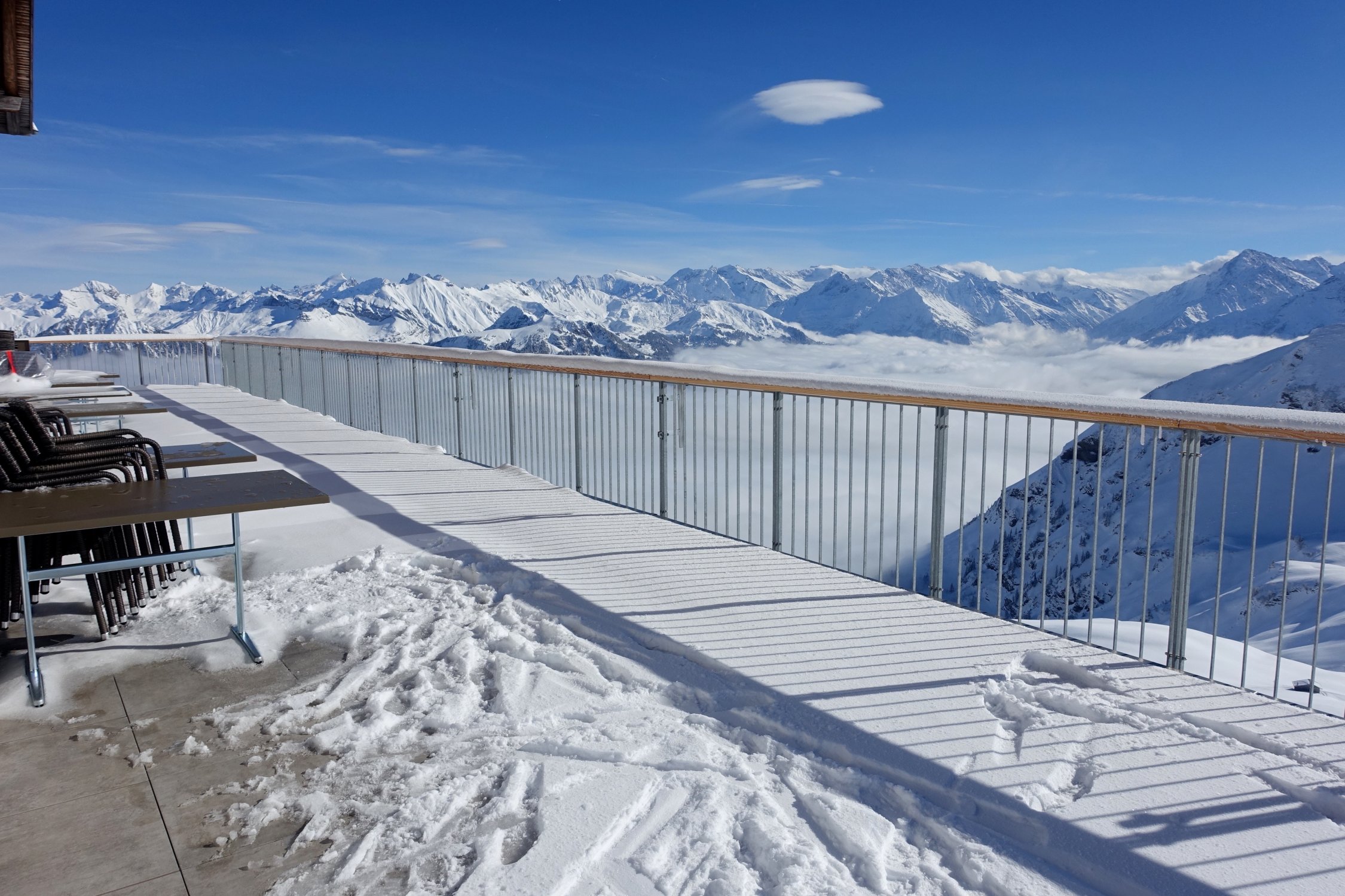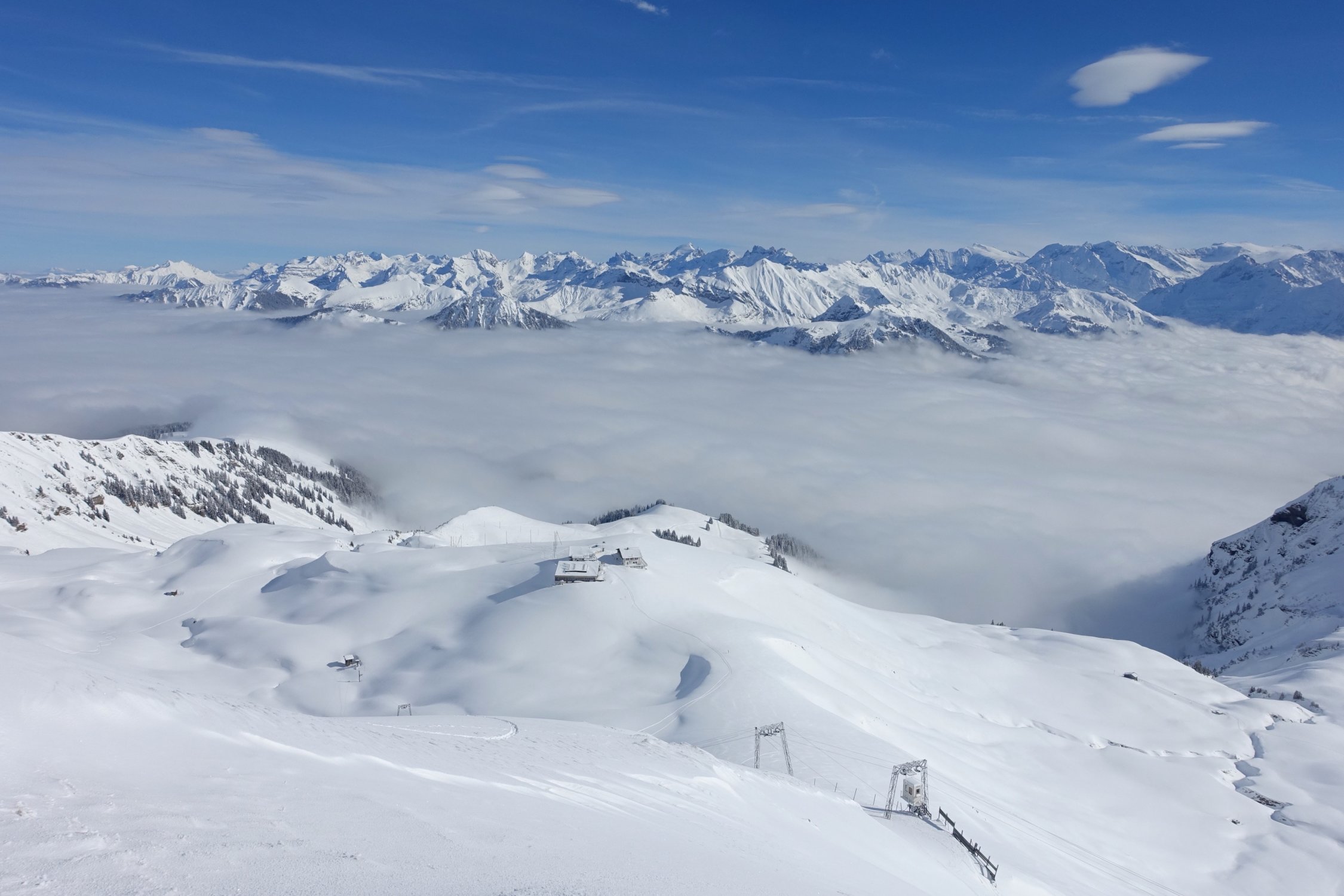 Das seit einigen Jahren stillgelegte Skigebiet Schönbüel, ist nun Dank der neuen Luftseilbahn ein wahres Skitouren- und Schneeschuhparadis geworden. Den Gipfel genoss ich heute alleine für mich.