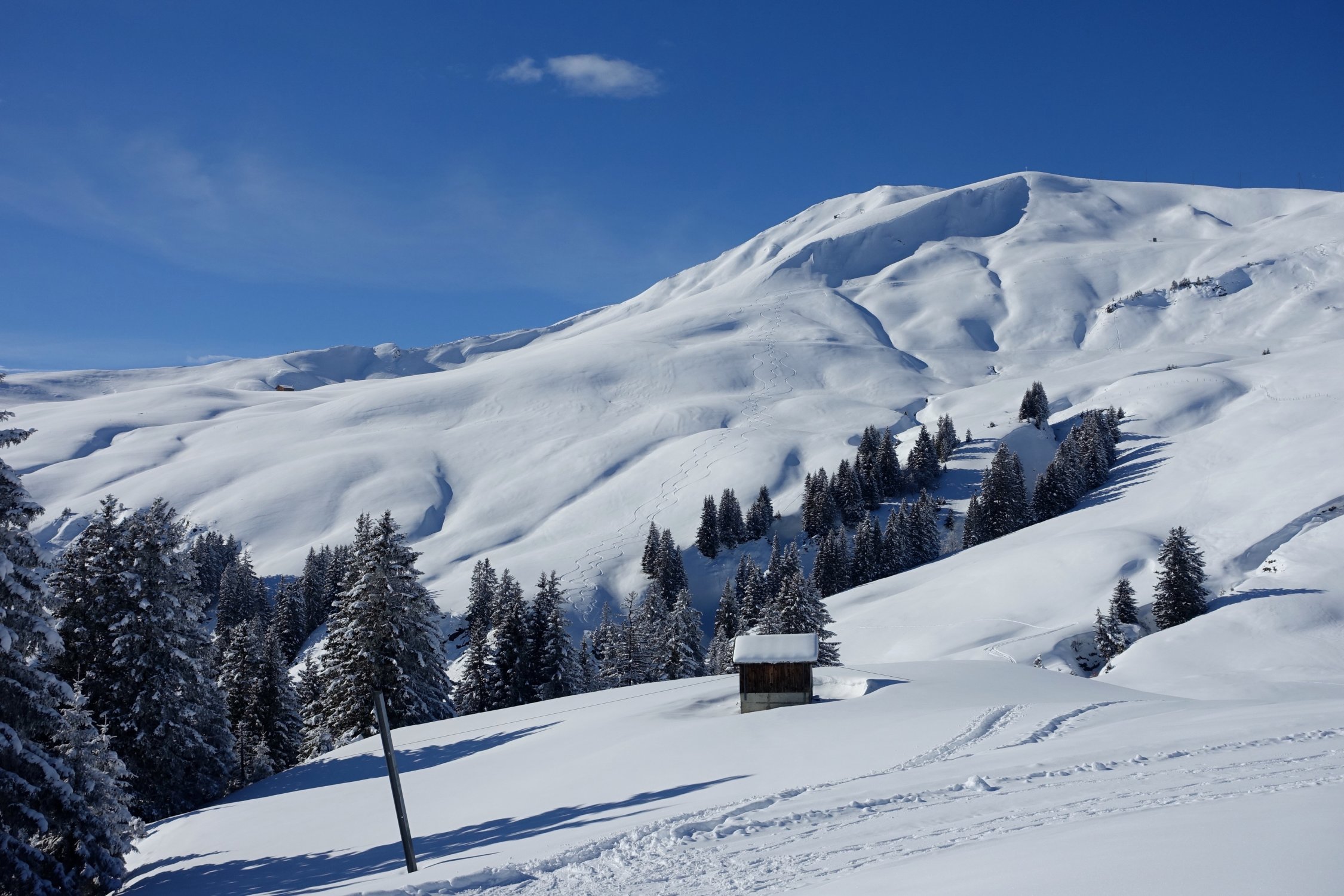 Achtung auf Triebschnee in steilen Mulden oberhalb Schönbüel