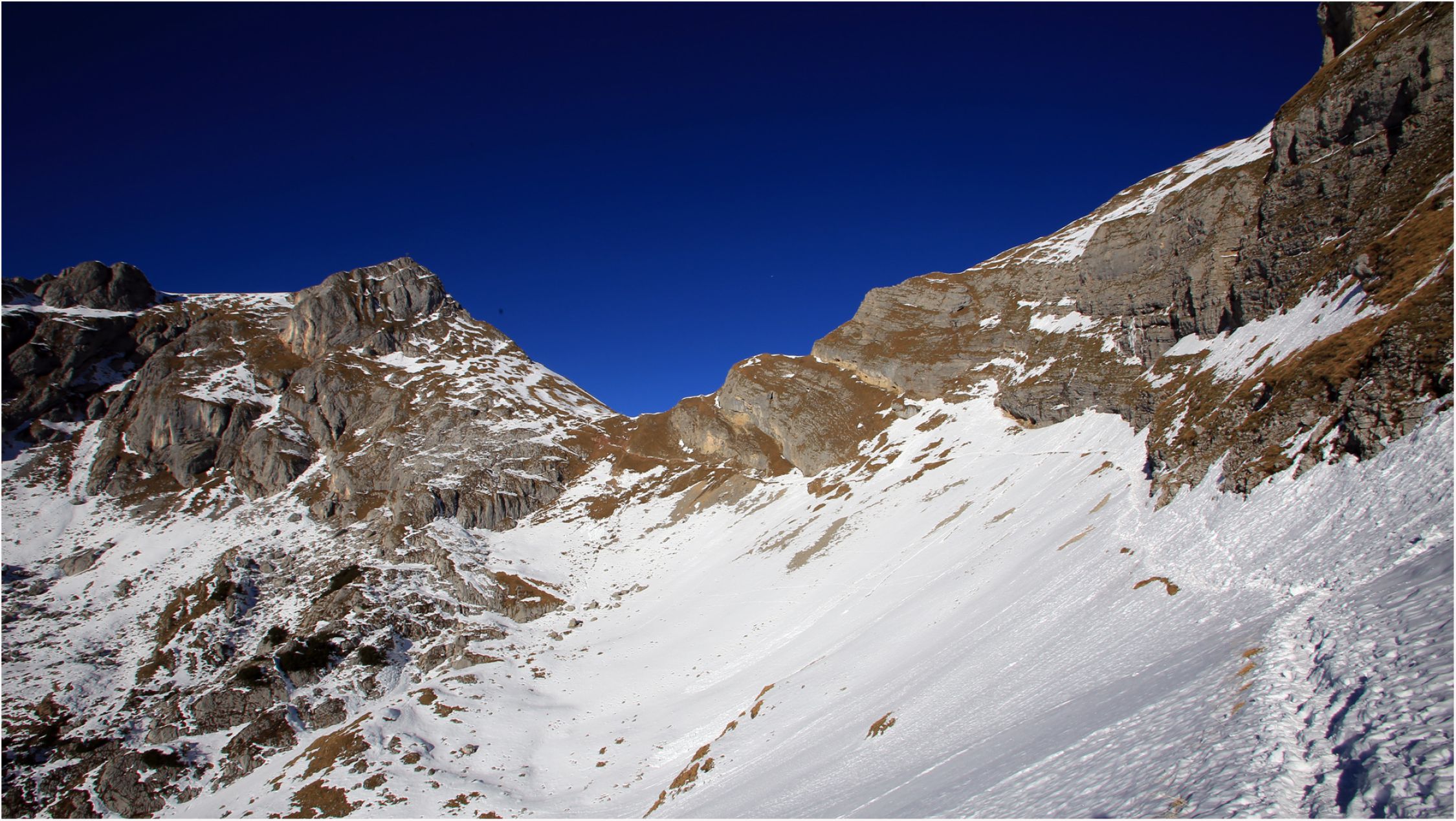 Perfekte Verhältnisse, sofern man nicht zu früh geht. Selbst auf Grödel kann man verzichten