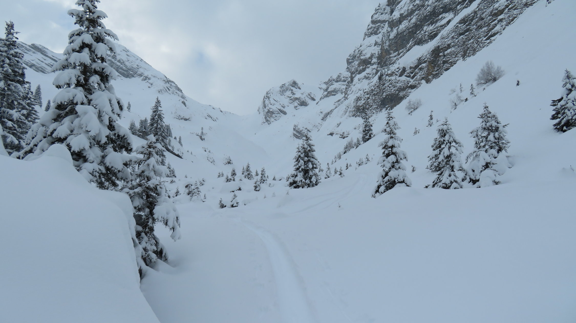 Super Verhältnisse 30-50cm Pulverschnee mal leichter zum drehen und mal wieder ein bisschen schwieriger in der Abfahrt je nach Windbearbeitung