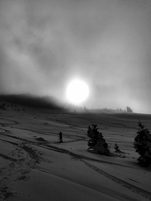 Wetter beim Start noch bewölkt bei knapp 0C. Danach vereinzelte Aufhellungen im Wechsel mit lästigen Nebelschwaden.
