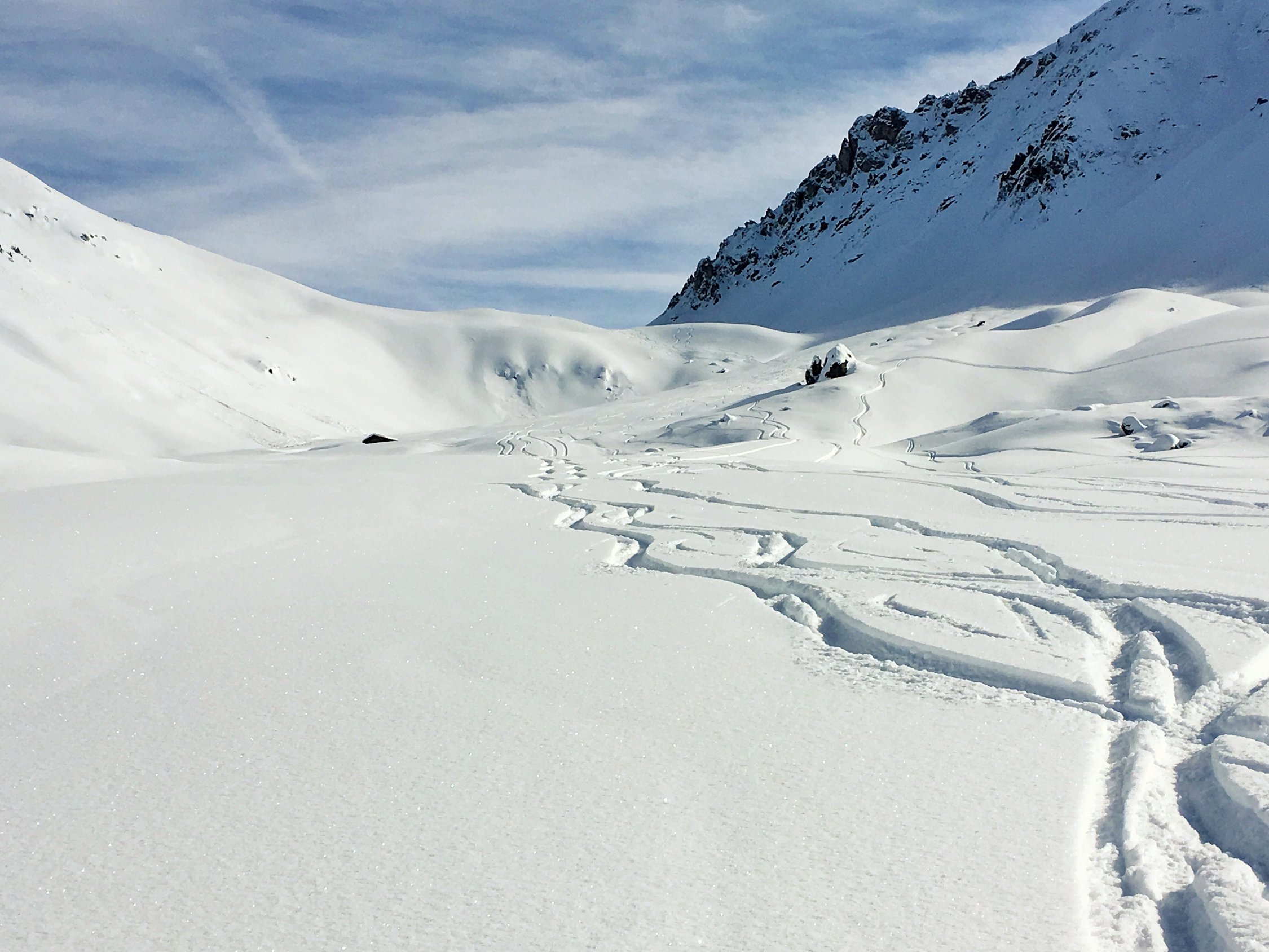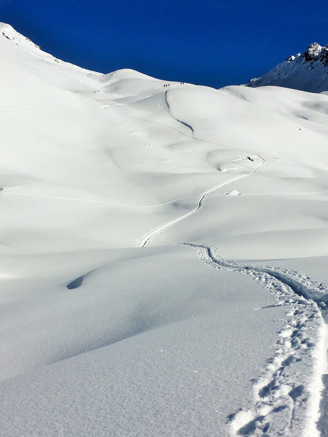 Perfekte Bedingungen, Pulverschnee vom Feinsten. Abfahrt perfekt bis Monstein.