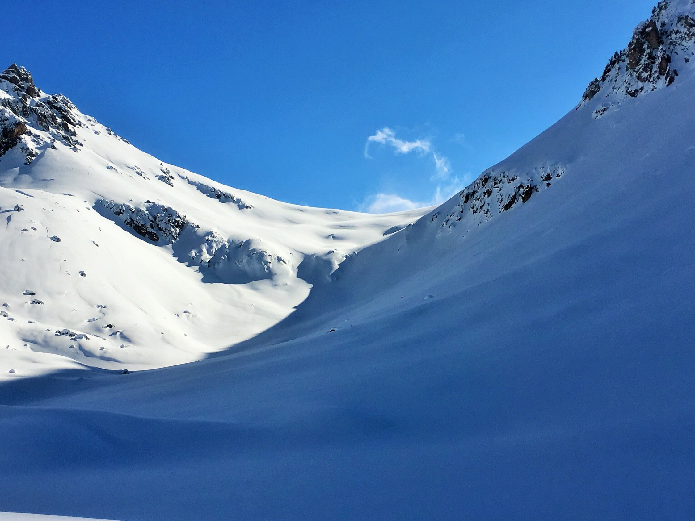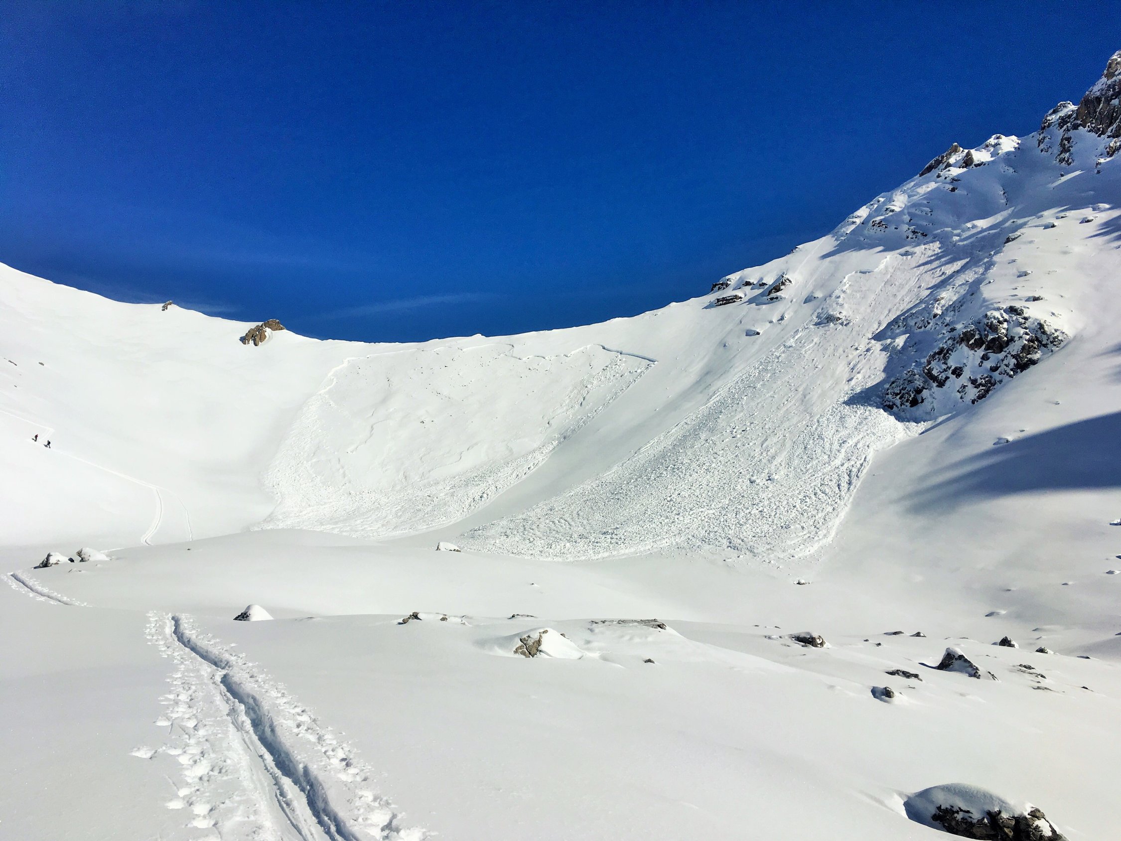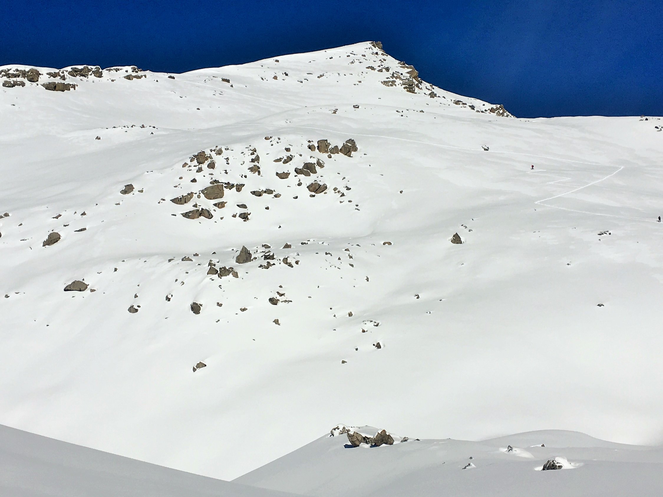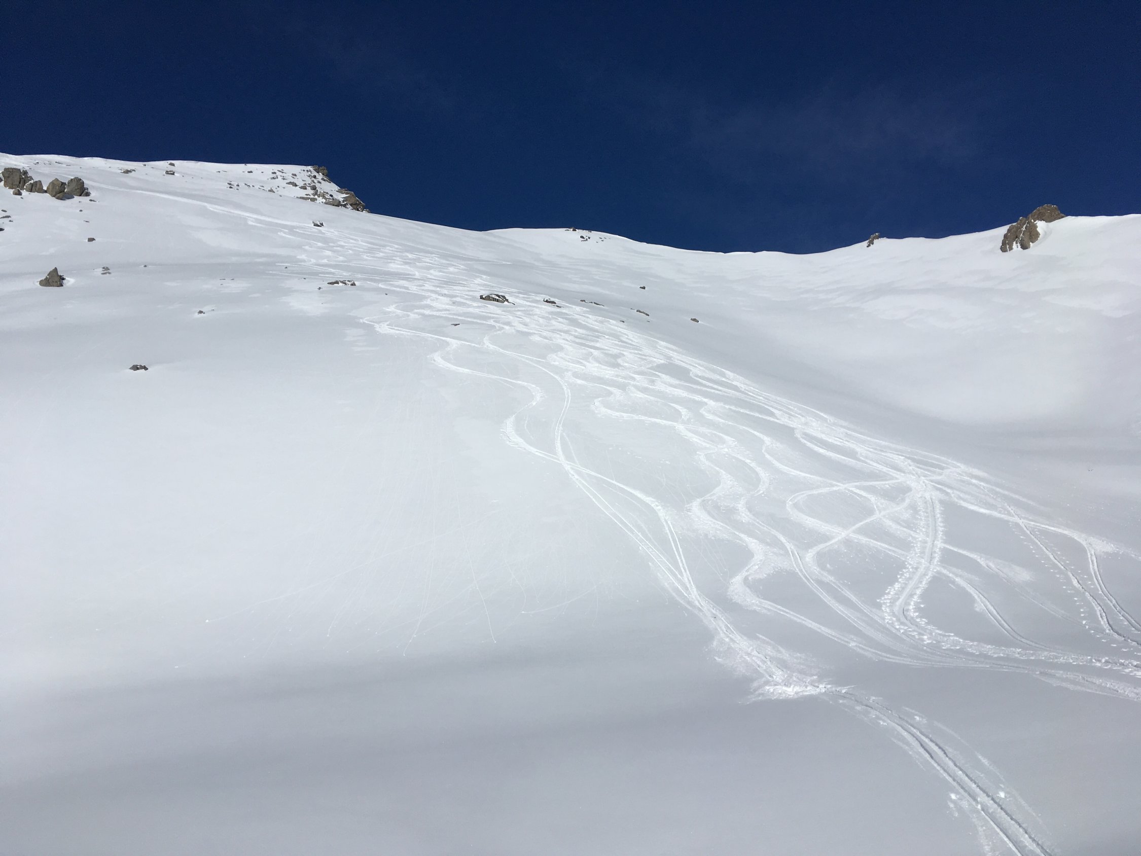 Bei P. 2745 zuhinterst im Bärentälli riesige Lawine Exposition SW (Bärentällifurgga, siehe Foto).