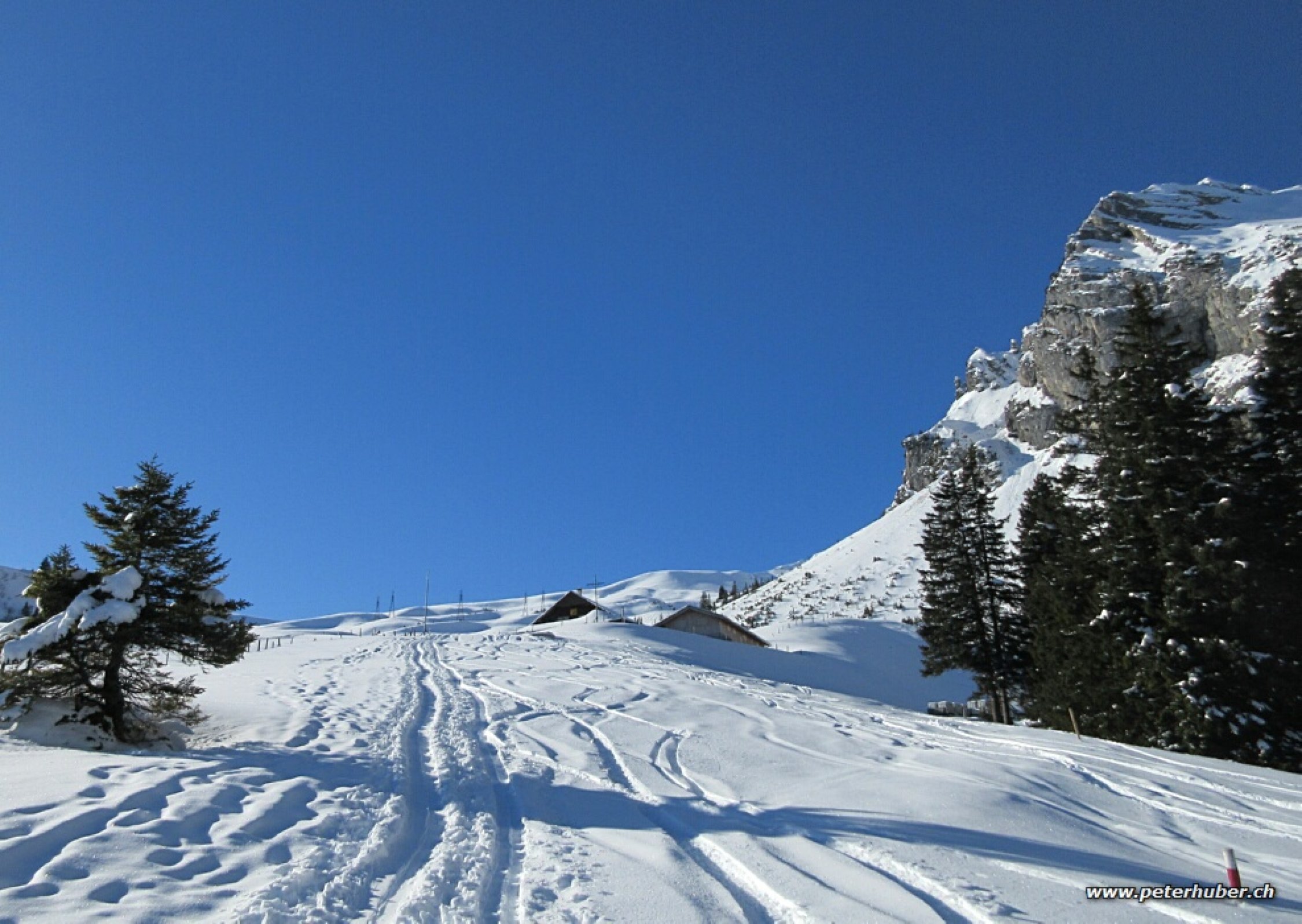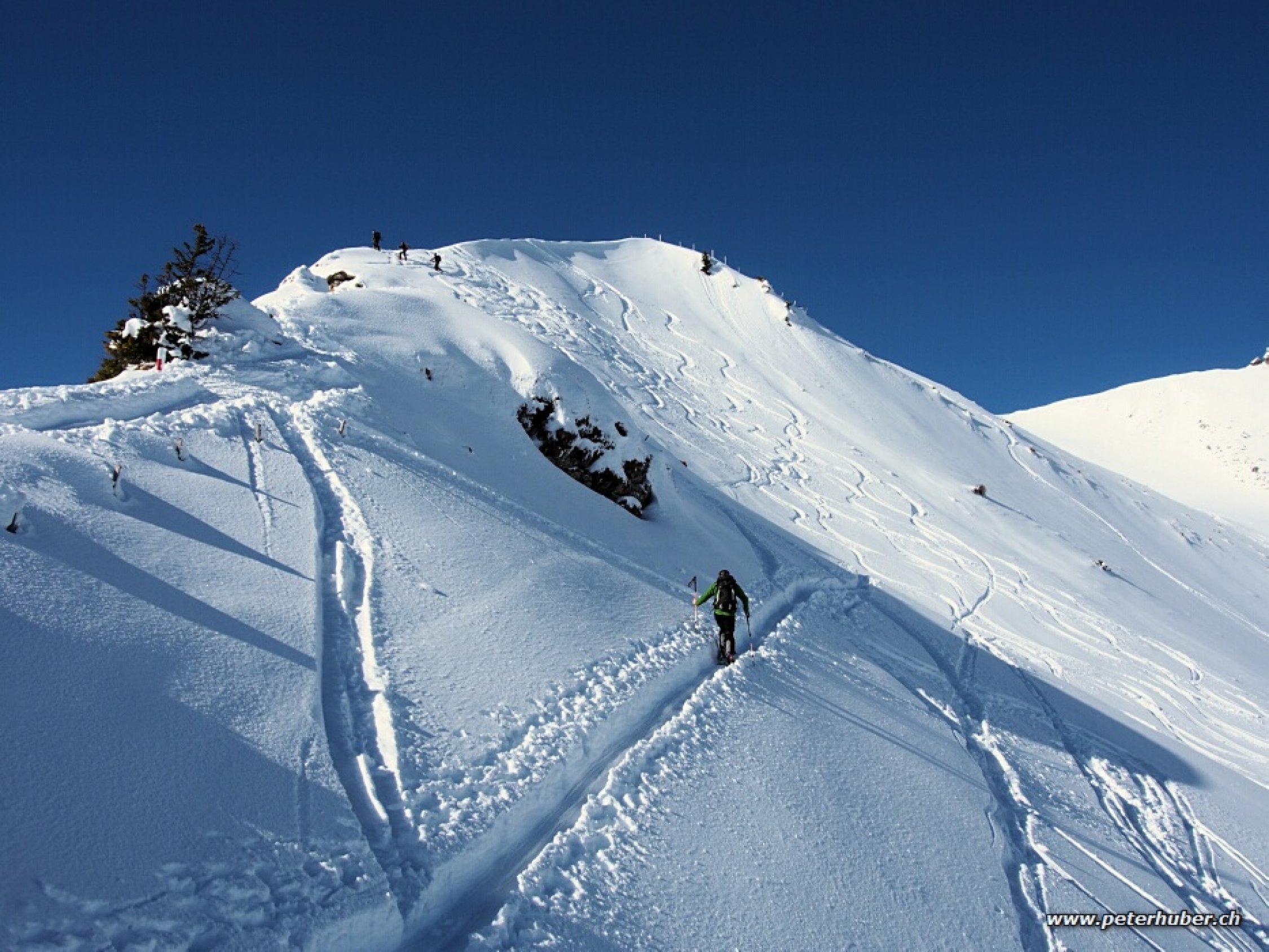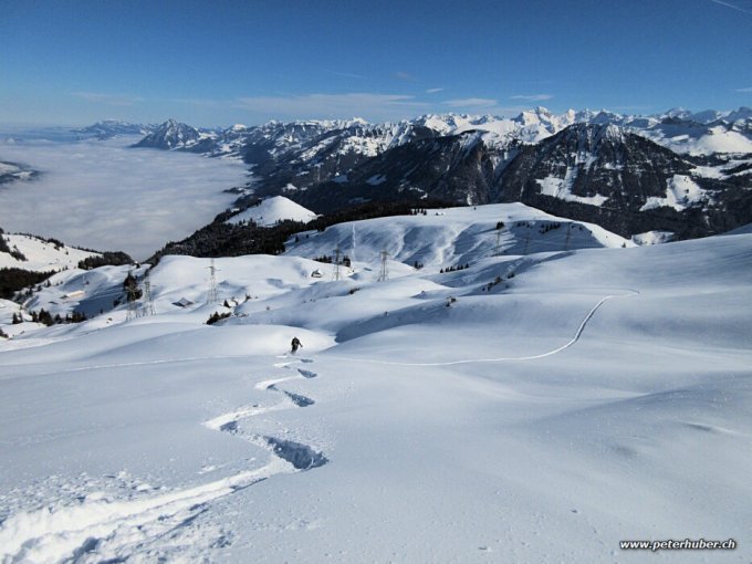 Strahlend schönes Wetter. Auf dem Gipfel zwischendurch kalter Wind. Bis Alp Brosmatt hinauf pistenartig - gut für den Aufstieg und für die Abfahrt! Zirka 10 cm Neuschnee mit einem leichten Deckel. Gute Spur zum Gipfel hinauf. Schnee ist nicht verblasen. Es hat gerade genug, aber nicht zuviel.