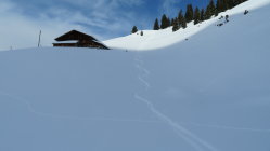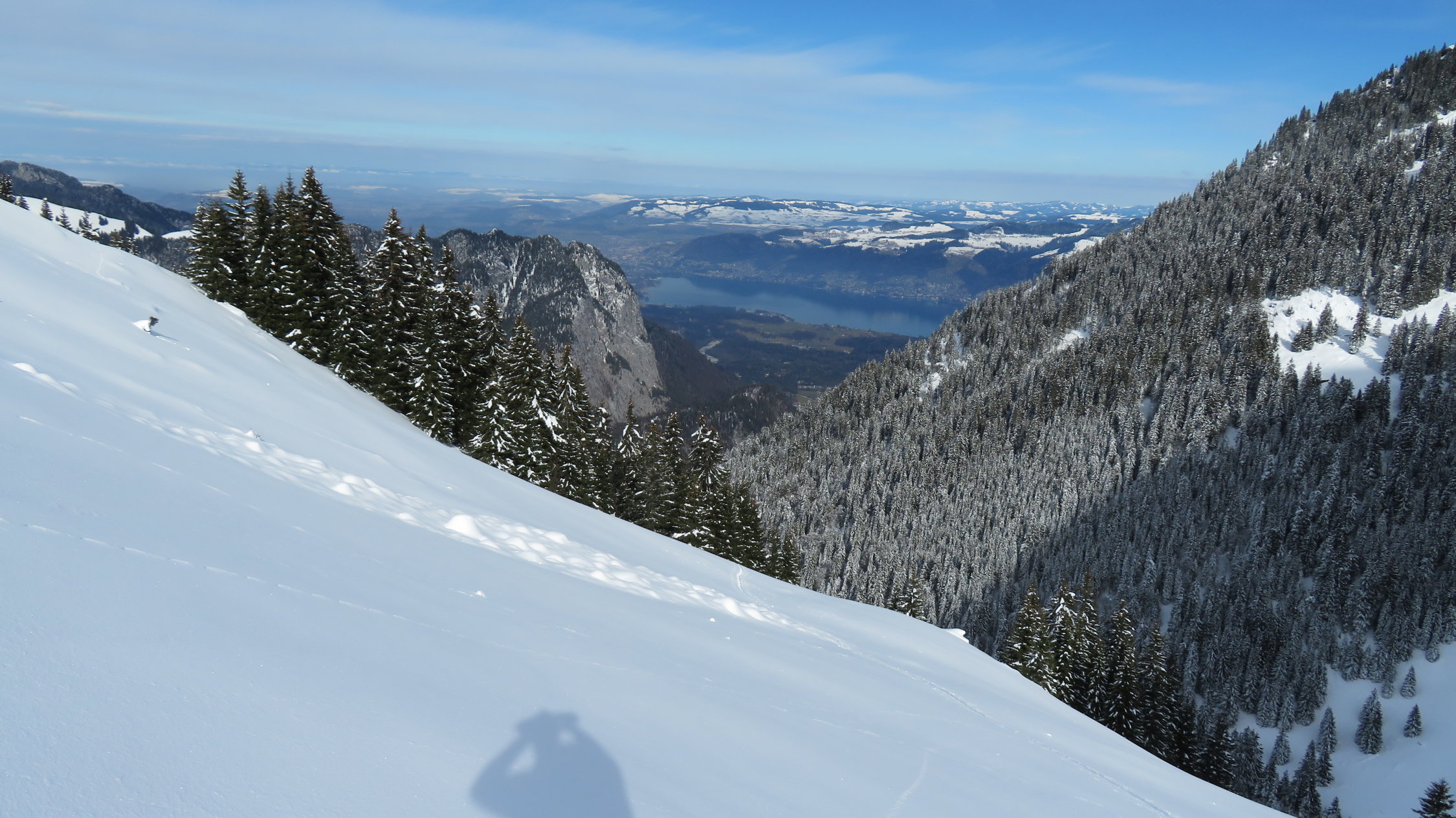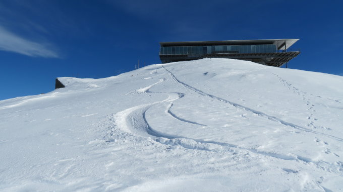 Die Westflanke des niesen hat in der Abfahrt je nach Hanglage Pulver und teilweise einen Deckel der aber noch gut fahrbar ist.