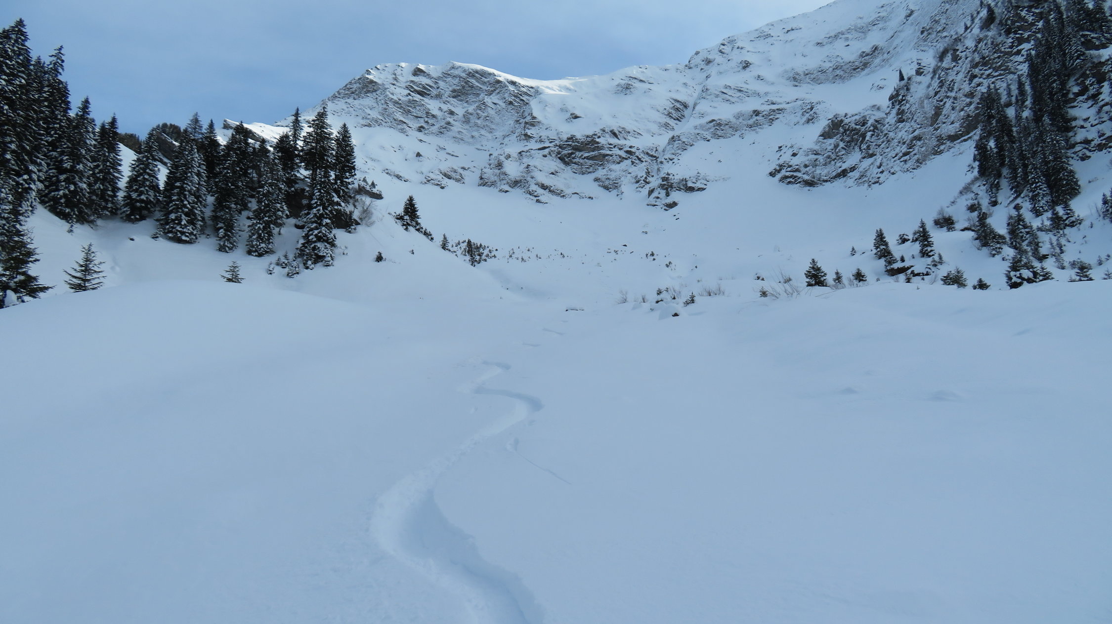 Ab Bärgli 1275m hat es 20-50cm Pulverschnee.
