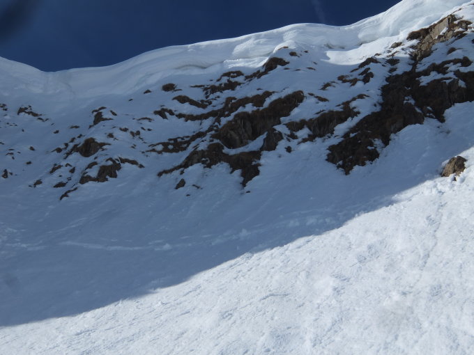 Wärend sämtliche Lemmige die Modetouren (Höferspitze, Güntle.....) bevölkerten, war ich im Kar alleine. Der Aufstieg zum Heiterberg hat leider nicht geklappt. In der Rinne lag haltloser Pulver ohne Unterlage und rechts daneben war alles schon ziemlich weich. Unter der Wächte habe ich dann abgebrochen.