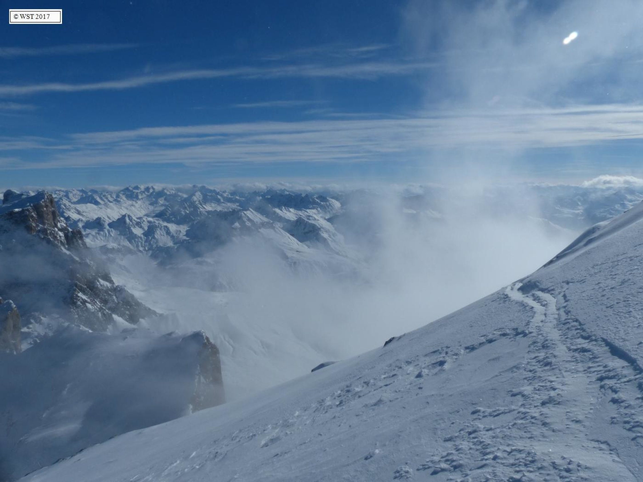 - kammnah und am Gipfel sehr heftige Böen, schätze gut und gern 60-70 km/h aus ca. S/SW