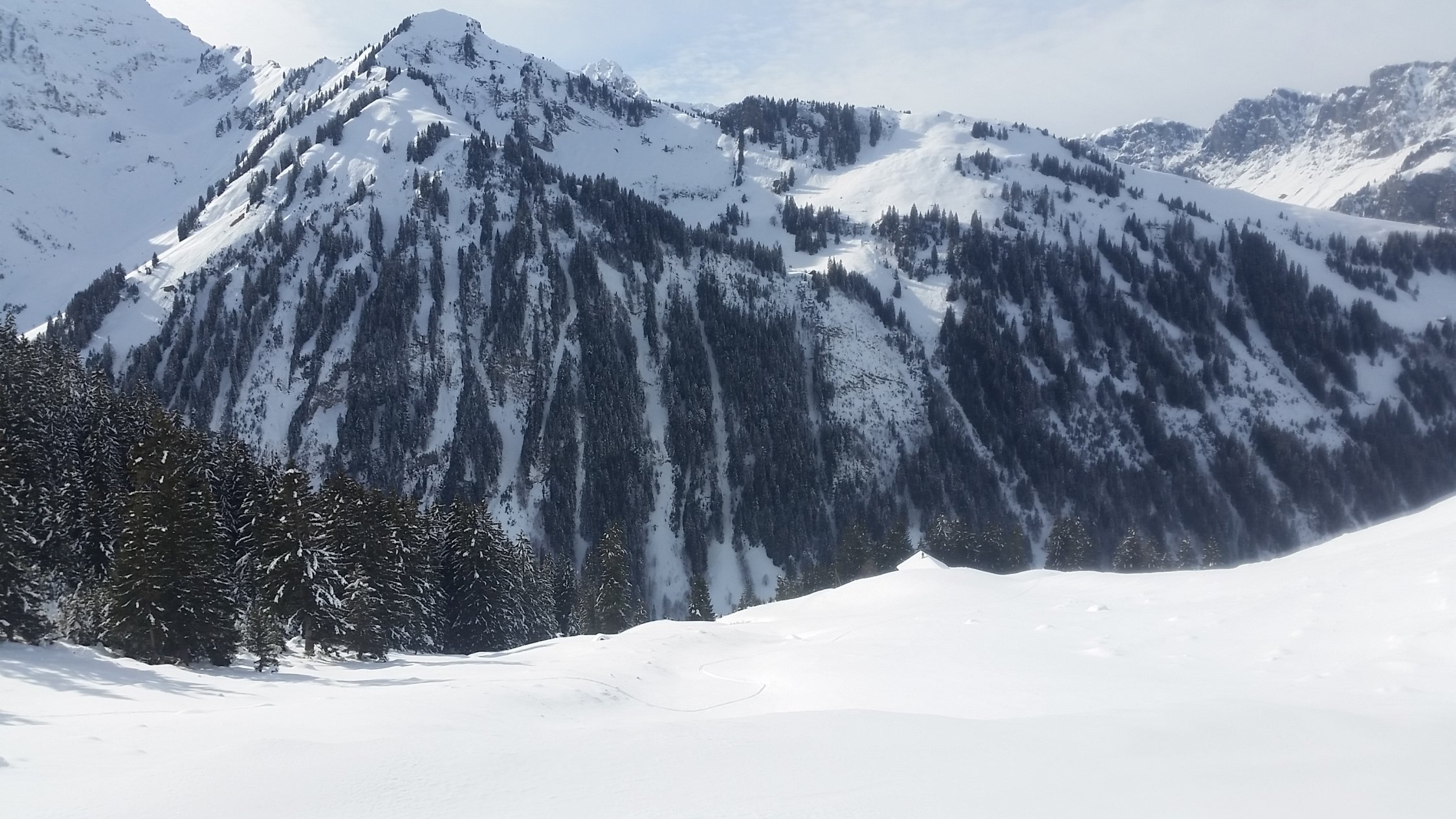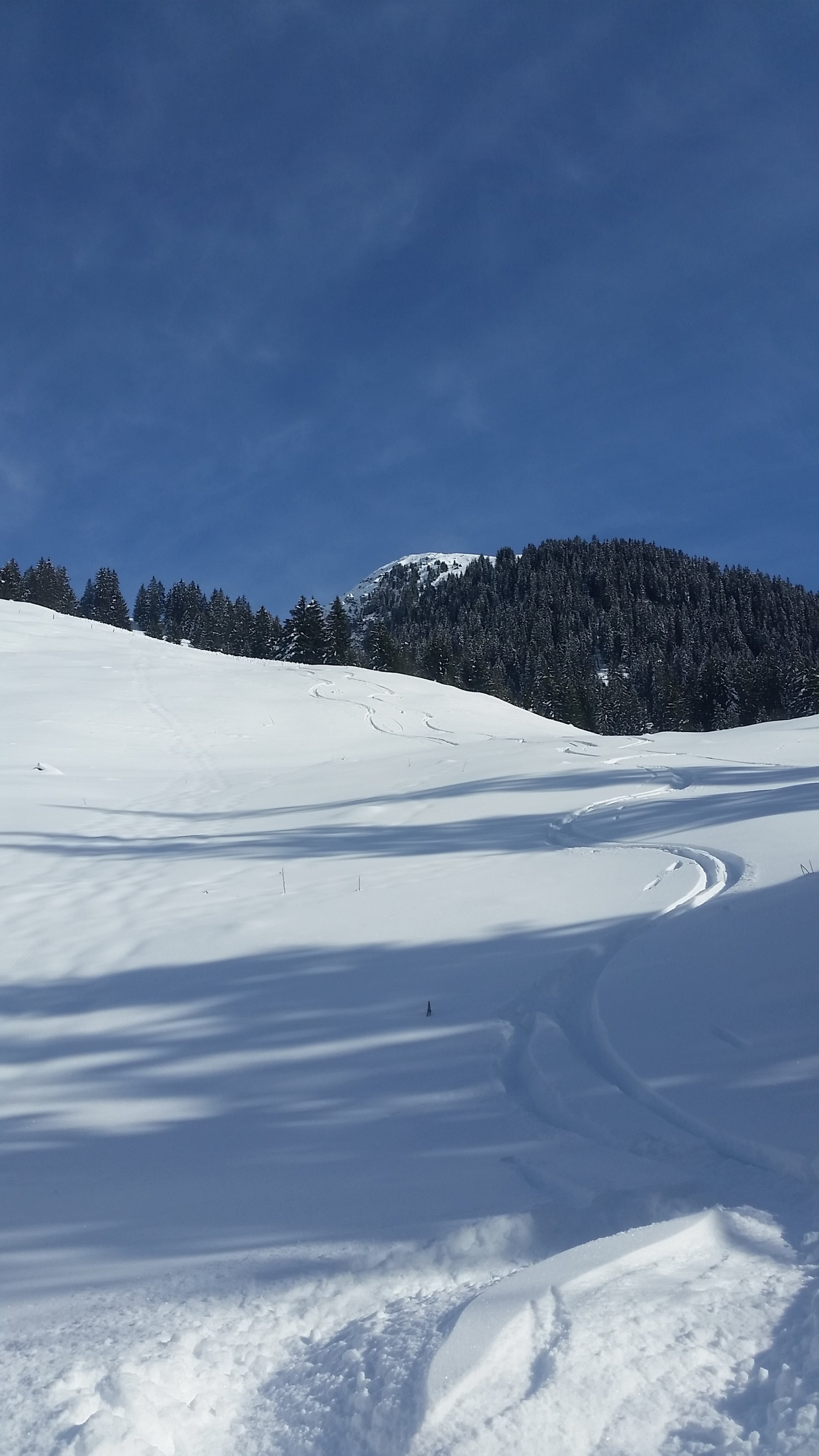 Strasse geräumt bis ober chirgeli,ab da gut zu spurender Schnee bis culifuss.culi bis knietiefe pulfer auf gut tragender unterlage.abfahrt super pulfer bis oberchirgeli.sonne hatte schmelzharstkruste unten aufgelöst und daher super zu fahrender feuchter pulfer bis strasse.