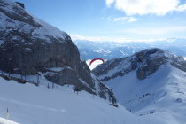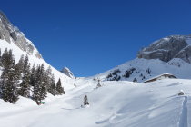 Ab Fräkmünt dann ganz tolle Pulverschneeverhältnisse, teilw. leicht gedeckelt. Schlusshang linksseitig leicht aufgesulzt, zum Abfahren tolle Bedingungen
