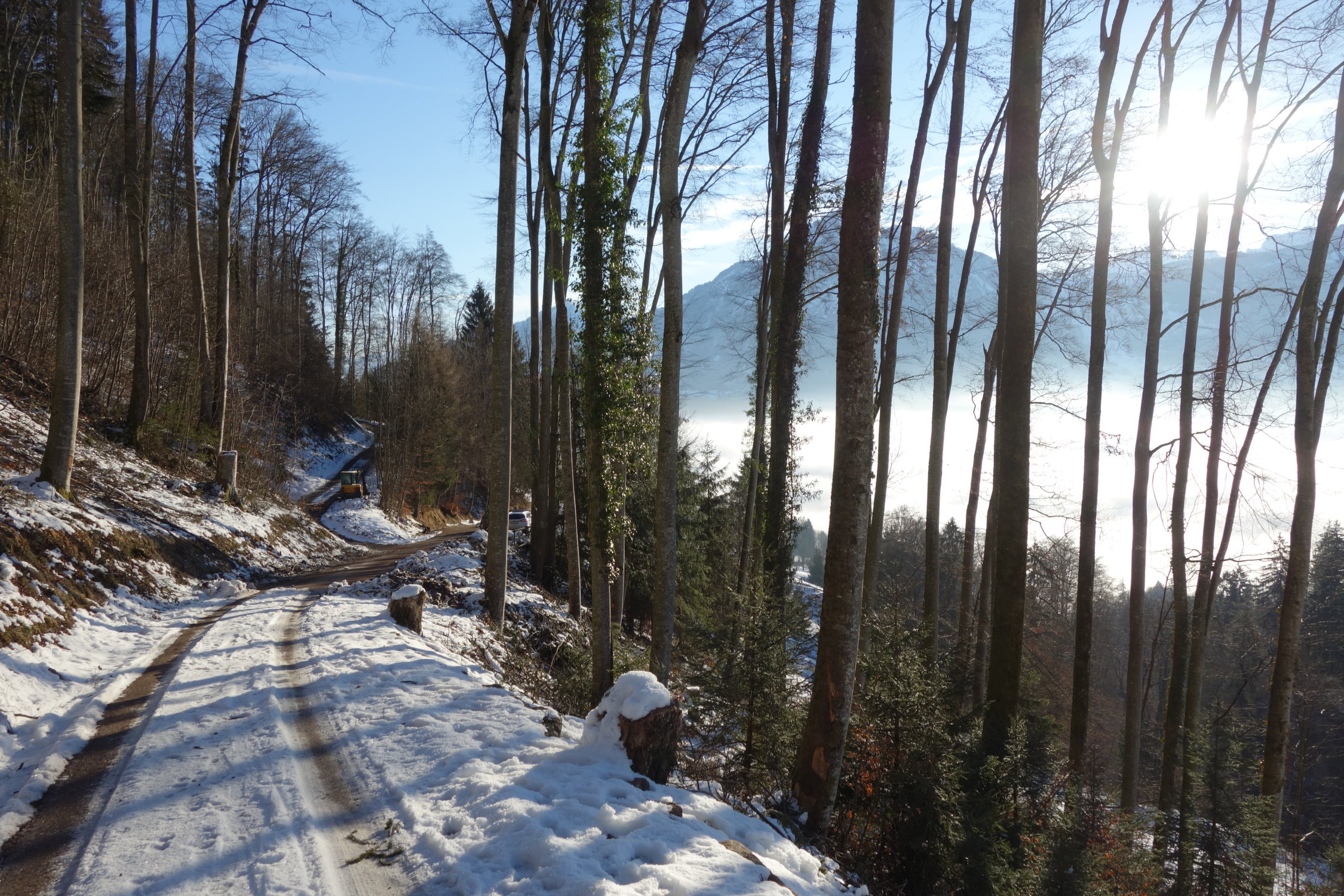Verhältnisse zweigeteilt; bis Fräkmünt sehr wenig Schnee, Aufstieg auf Strasse bis Lütholdsmatt morgens noch ok, bei der Abfahrt nachmittags schon viele apere Stellen, zudem sehr kräftezerrend (Vieles im Stemmbogen), da ein bremsen nicht überall einfach und entgegenkommende Autos zu erwarten waren.