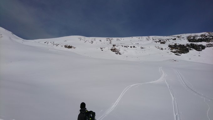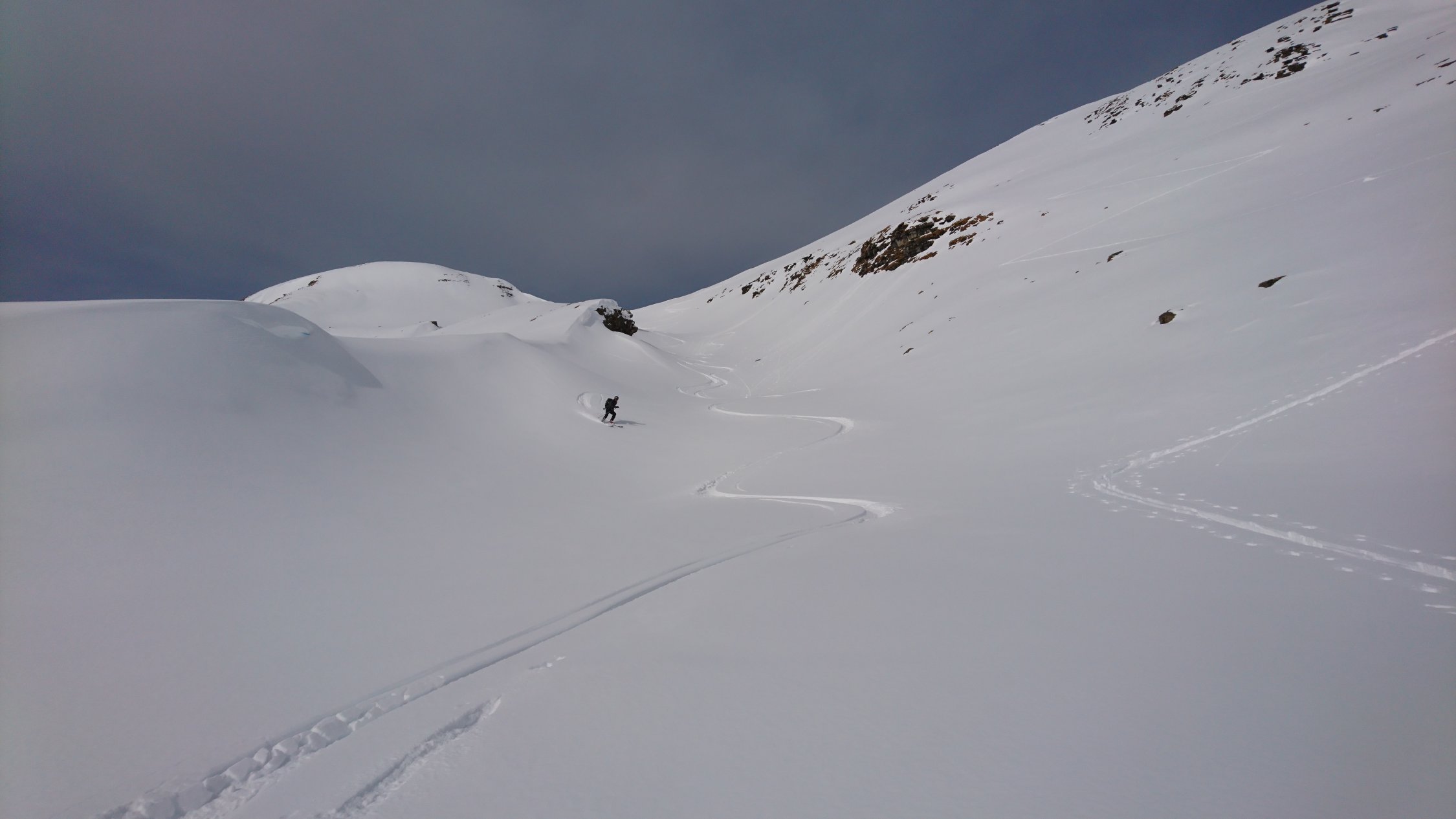 Dann wurde nochmals angefellt und wir gingen auf einer bestehenden Spur zum Faulhorn. Die Abfahrt von dort war bereits etwas aufgeweicht und der Schnee schwerer. "Steinschläge" haben wir aber erst unterhalb von 2'200m vereinzelt einkassiert.