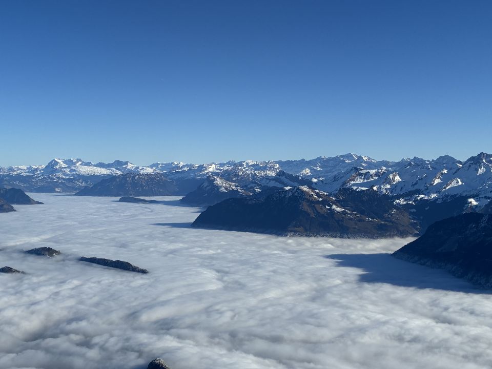 Mit Bahnstart 8:30 Uhr auf Fräkmüntegg. Hier bereits über der Nebelobergrenze, windstill, Temperatur etwa um den Gefrierpunkt. Wanderweg bis Nauen meist aper. Ab 1600 m nordseitig durchgehend Schnee, meist hart aber kaum vereist. Gute Trittspur im Zustiegsbereich zu den diversen Nordwandführen. Wir sind am Abzweiger der klassischen Kulmchrachen-Route weiter dem mittleren Couloir gefolgt. Hier steilt es rasch auf, eine erste, leichte Mixed-Stelle ist noch easy. Etwa 70 m weiter oben dann Stand an zwei Eisschrauben unterhalb eines Klemmblocks. Abdrängende, griff- und trittarme Kletterstelle, etwa unterer 4er Grad. Nach Vorsteigersturz in den Stand Abbruch der Übung, kurzer Abstieg und dann via Normalführe in den Kulmchrachen-Sattel.