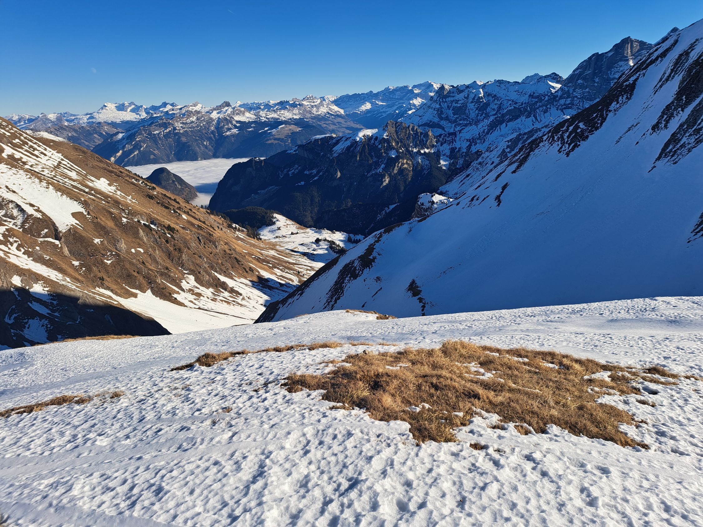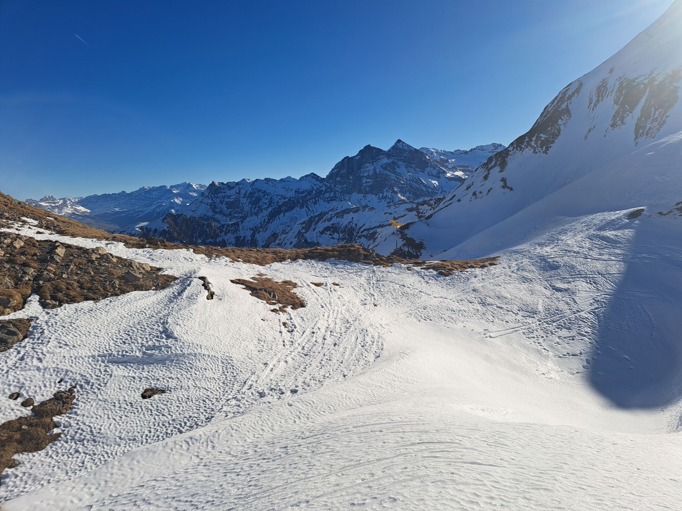 Braucht Neuschnee damit die Abfahrt genossen werden kann. Zustieg von Gitschenen nicht empfehlenswert da zu wenig Schnee.