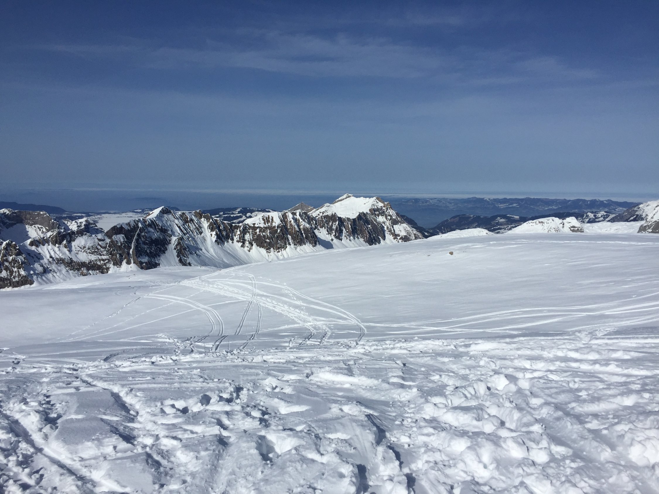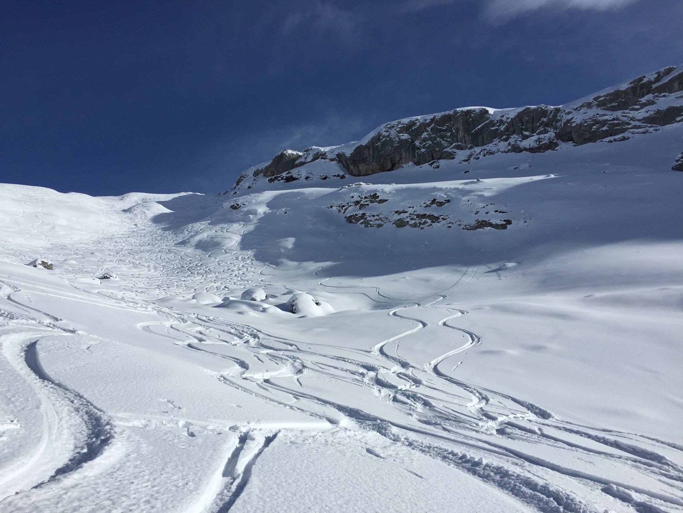 Sehr gute Aufstiegsspur, super Powder für die Abfahrt leider jetzt alles recht zerfahren bräuchte wieder etwas neuen Schnee.