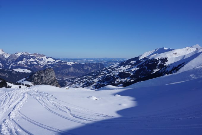 ab Ramsli mehrheitlich noch Pulverschnee, stark zerfahren, im Gipfelhang und am Gurbsgrat noch freie Stellen für eigene Spuren