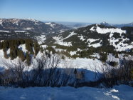 SO-Hang und dann über SW-Hang und zum Schluss über SO-Hang zum Gipfelkreuz des Großen Ochsenkopf (1.662m). Zurück über Aufstiegsroute zur Bergstation der Hörnerbahn und Abfahrt über Skipiste zur Talstation (941 m)in Bolsterlang.