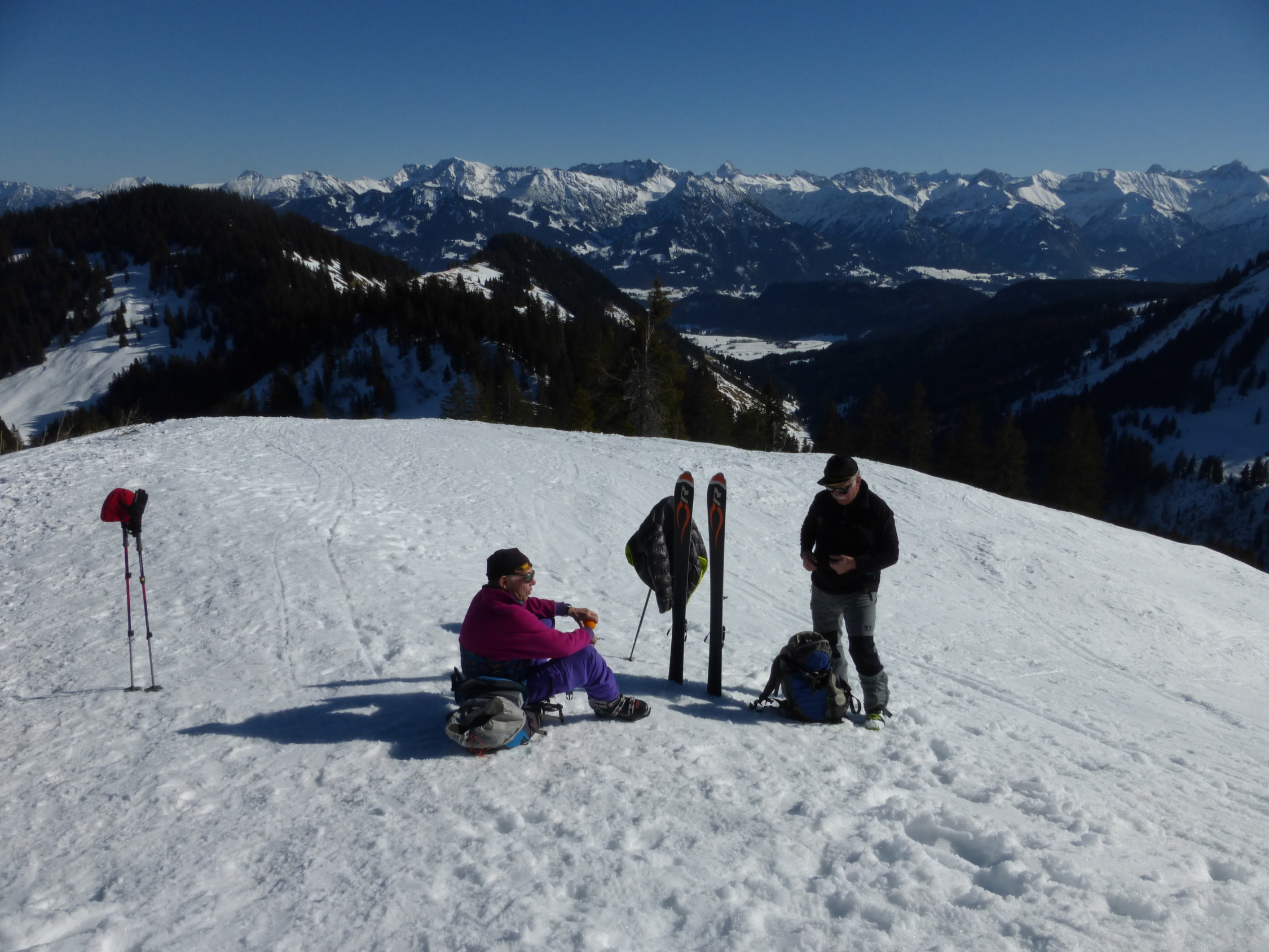 Gruß nach Sonthofen an die beiden Allgäuer - war ein netter Gipfelplausch. Wünsche euch noch viele schöne Touren diese Saison. Kleine Testtour mit neuem Scott-Skitourenschuh und Scott-LVS-Rucksack. Skitourenschuhe mit Carboneinlage federleicht(1.200 Gramm weniger gegenüber meinen alten) - man(n) schwebt förmlich aufwärts und auch der LVS-Rucksack ist super zu tragen.
