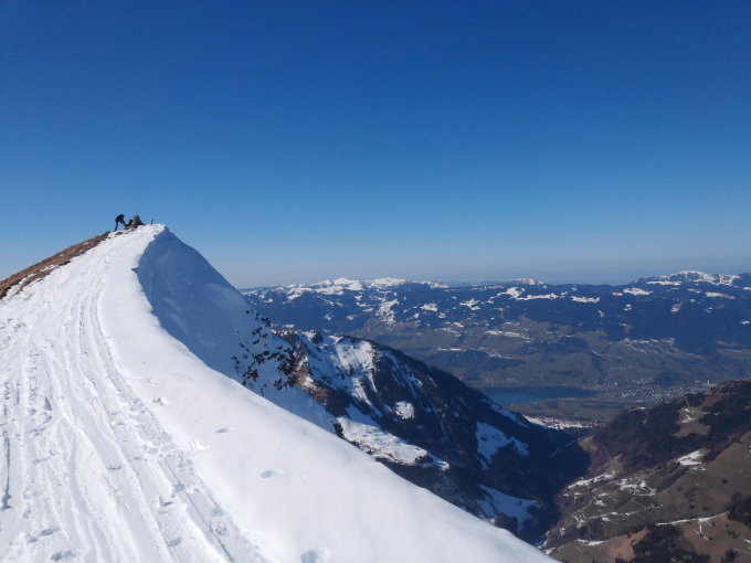Start um 9.30 Uhr in Melchtal auf guter Aufstiegsspur, im oberen Bereich ab und zu rutschig zur Alp Gruebi, wo uns die Sonne das erste Mal erreichte. Dann weiter in der Sonne zum Bocki Rotsand und in Sulzverhältnissen problemlose Querung zum Chrachen und weiter zum Gipfel. Dort gab es eine fantastische klare Fernsicht auf die weissen Nordseiten und die grünen Südseiten der Voralpen. Auf der Abfahrt fanden wir unter den Hängen des Nünalphorns noch freie Pulverhänge. Im Bereich Wanne ab und zu mit Steinkratzgeräuschen.