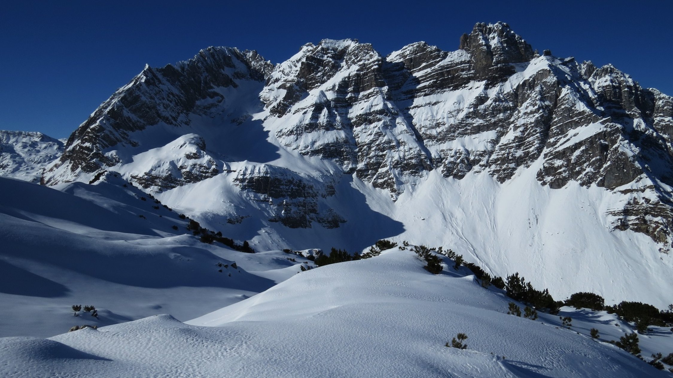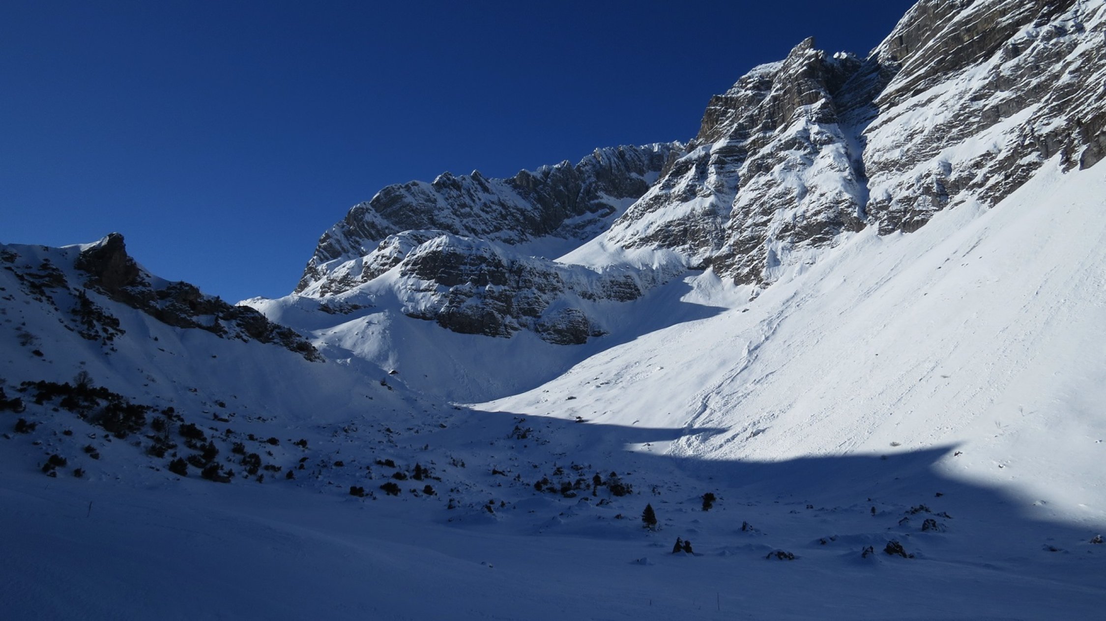 Noch genug Schnee in der Nordflanke und der Nordwestflanke, für kommende Schneefälle noch eine Weile eine gute Grundlage. Bei den aktuellen Bedingungen wird der Schnee um die Mittagszeit weich.