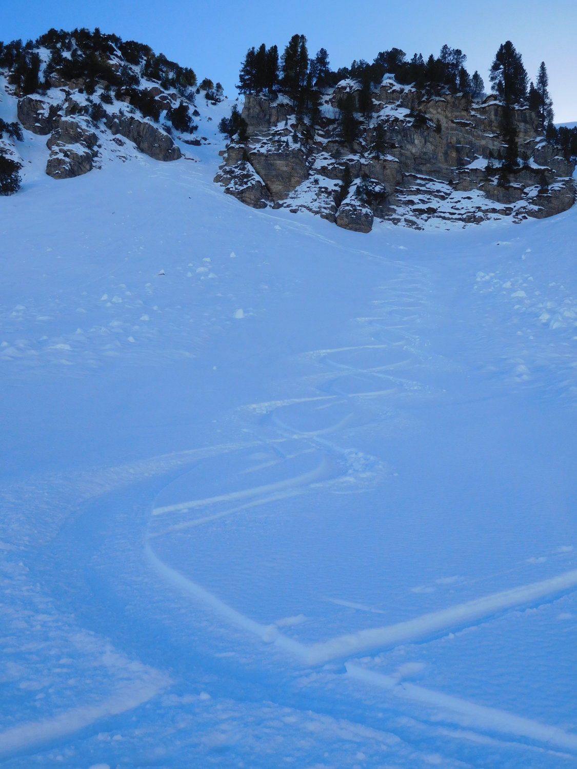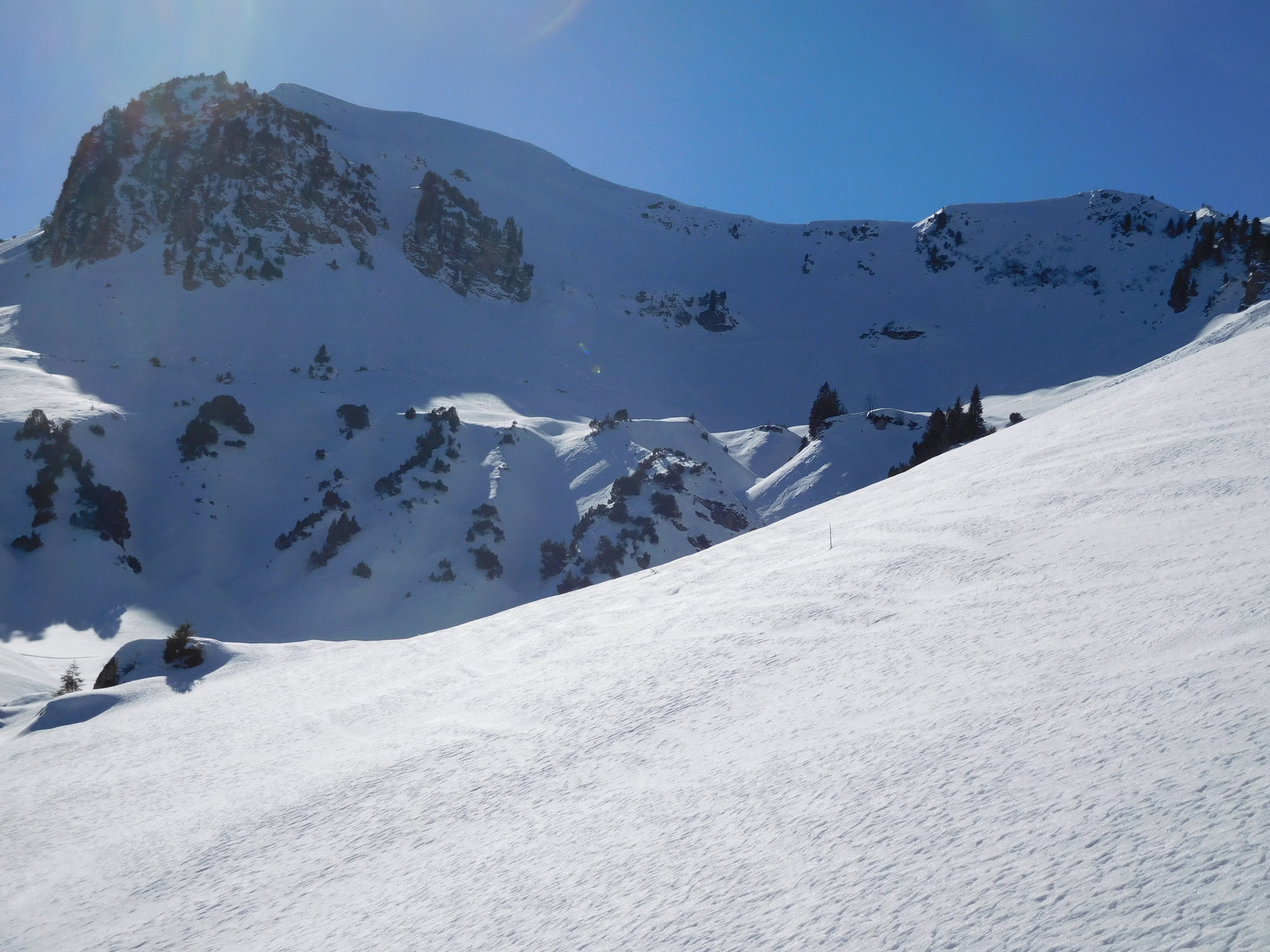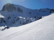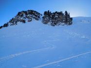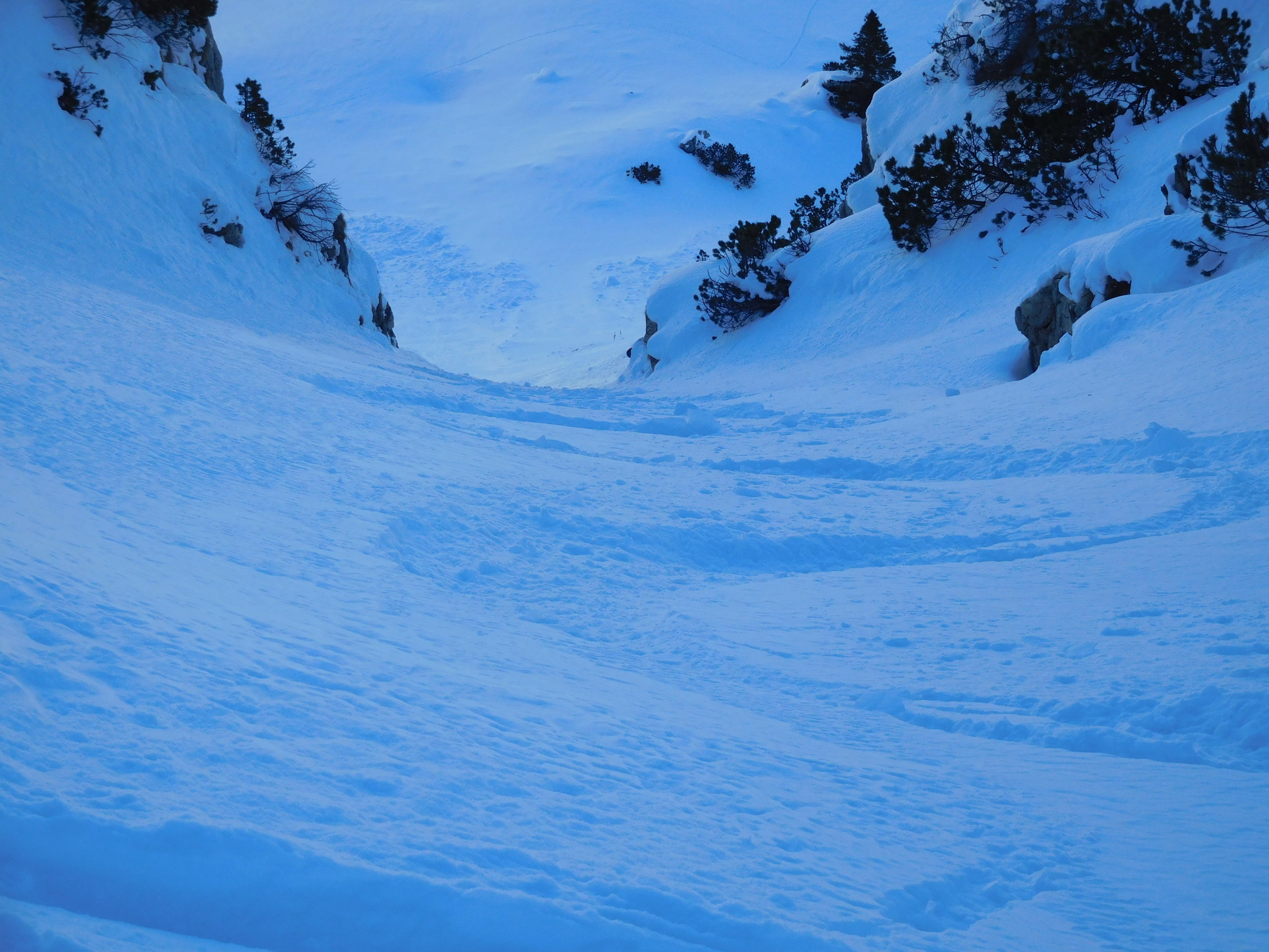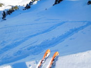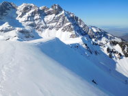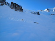 Abfahrt direkt durch dir Flanke und die Rinne unterhalb des Gipfels.