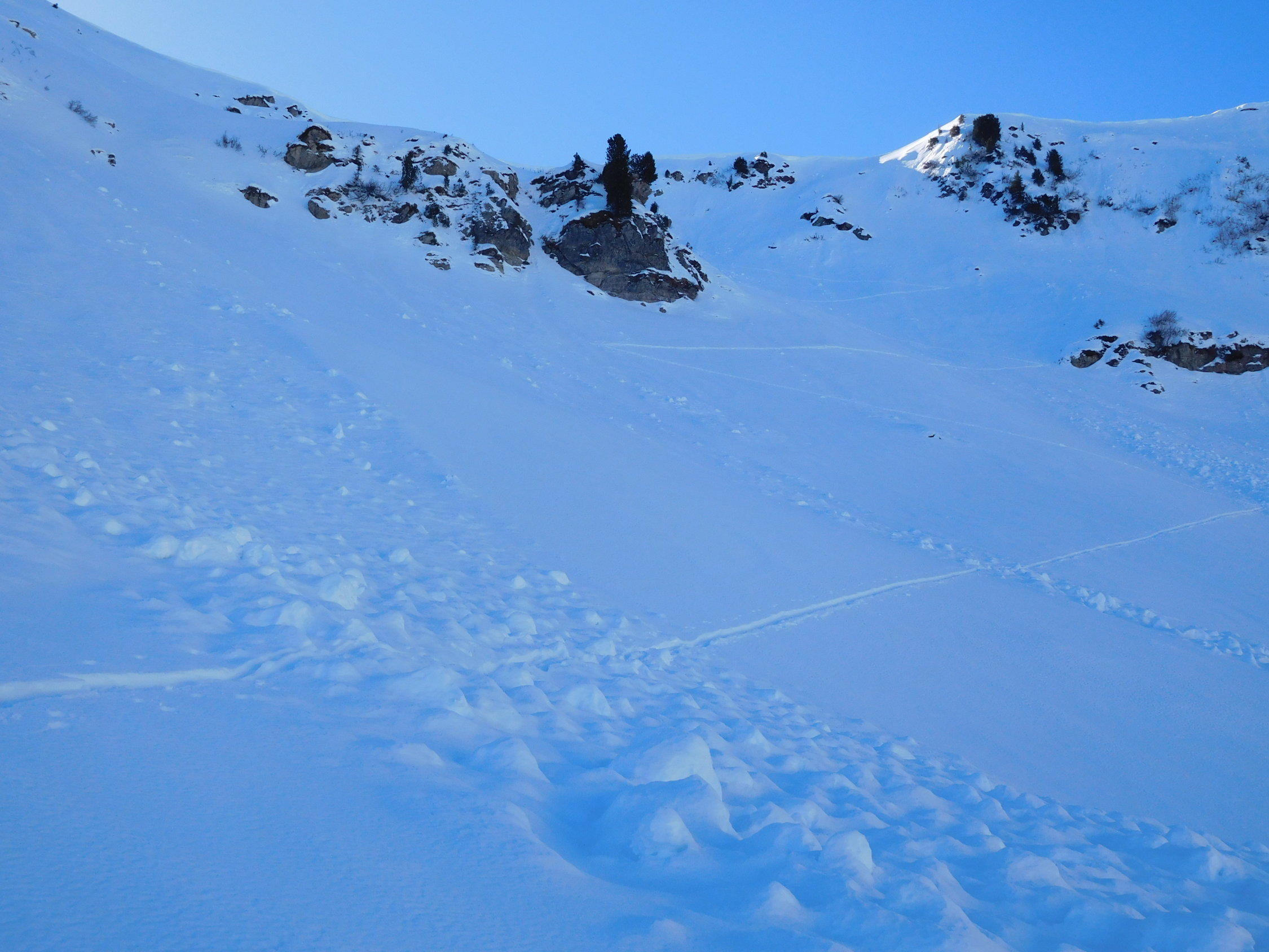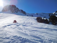 Gesetzer Pulver in den sonnigen Hängen unterhalb Alp Bigligen - alles perfekt zu Fahren!