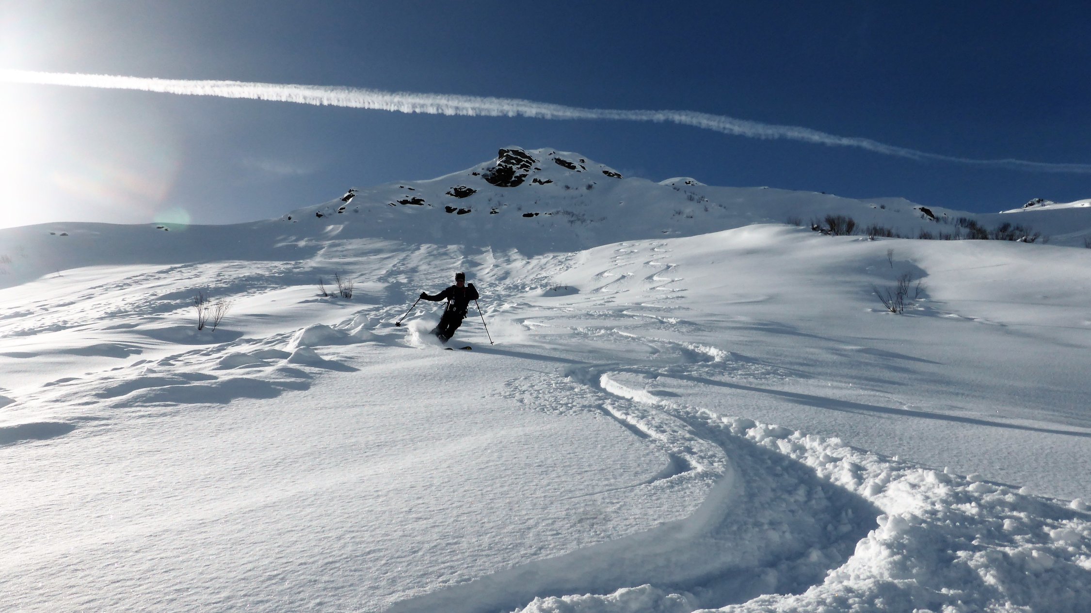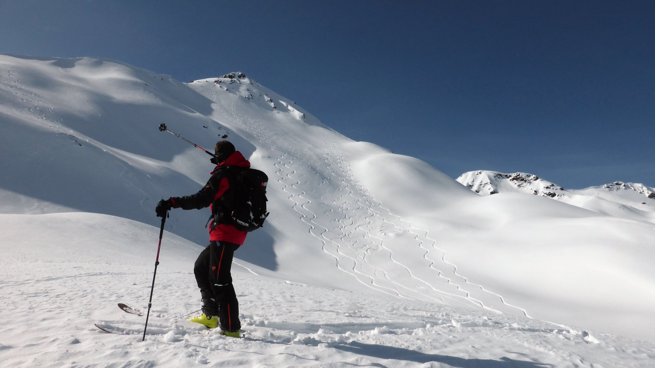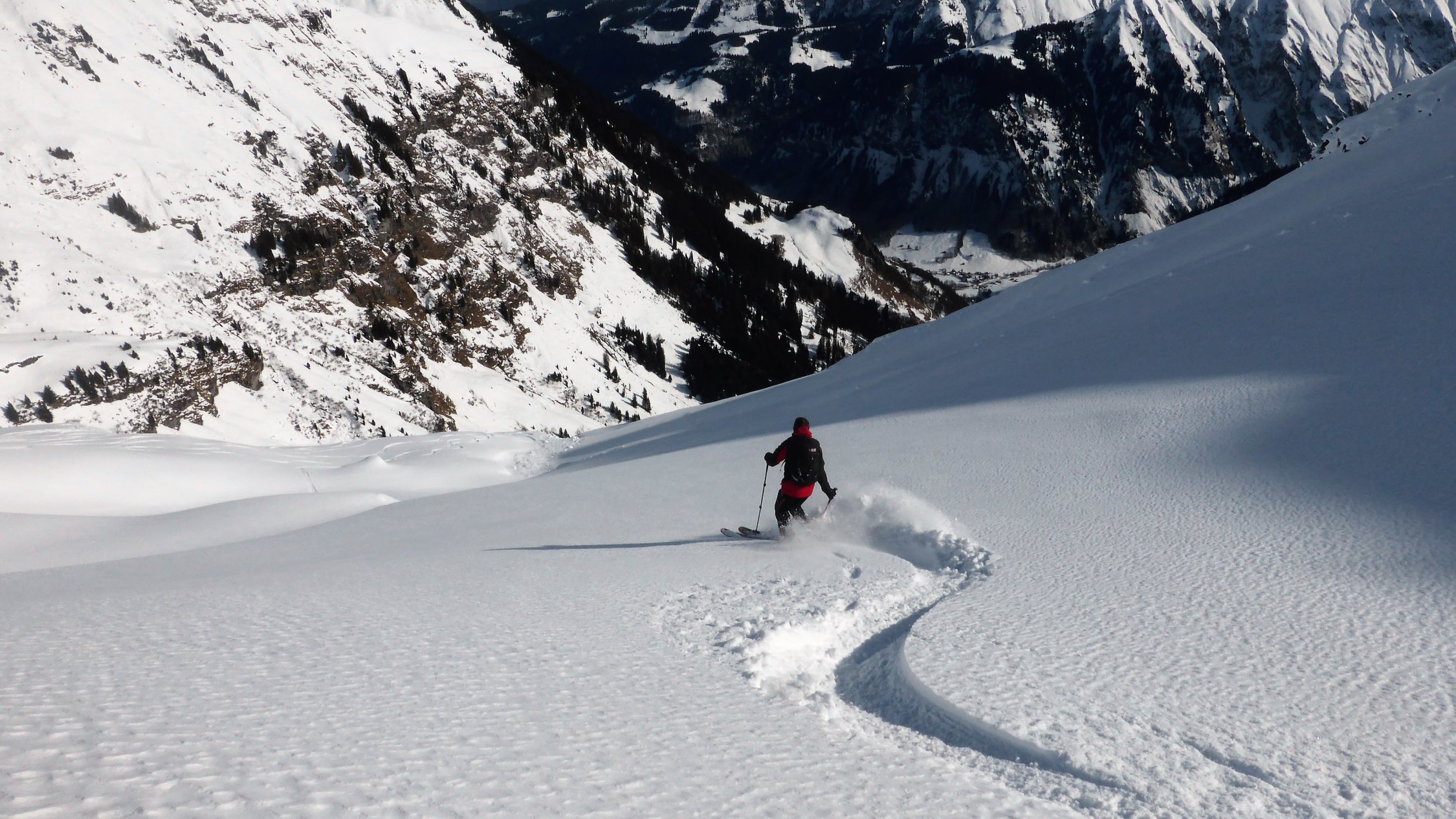 Toller Pulver in den Abfahrten, im Aufstieg zum Rotrüfner teils wind und bruchharst