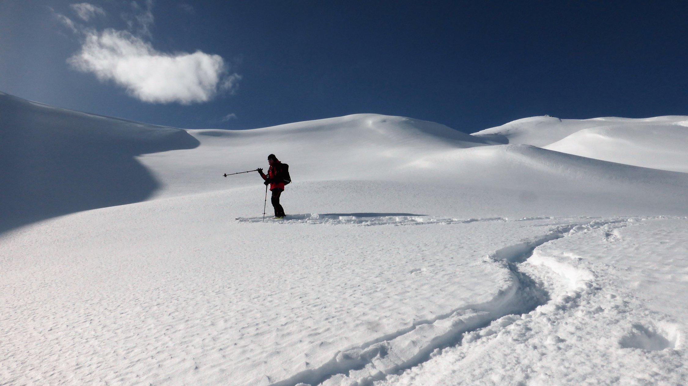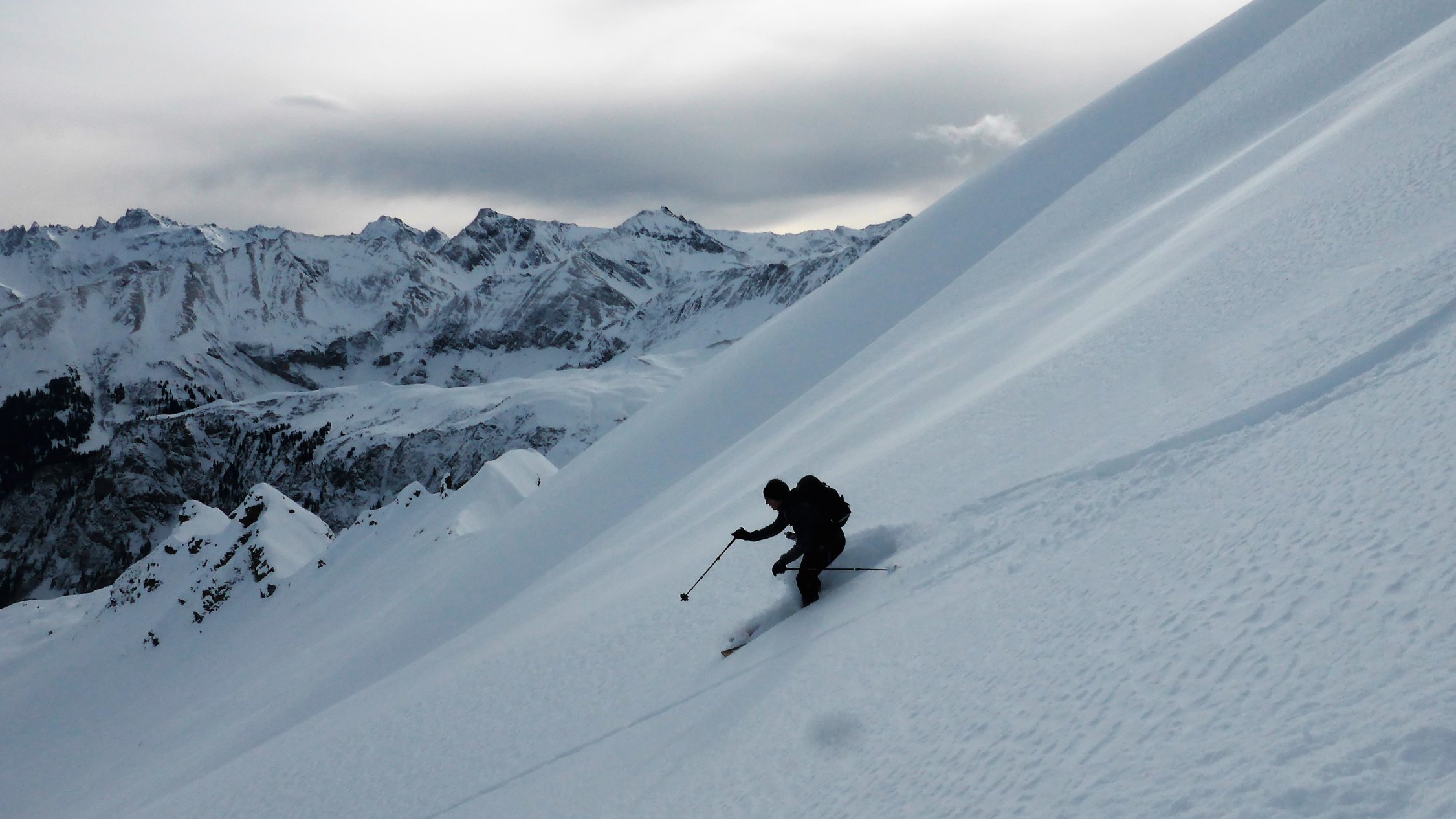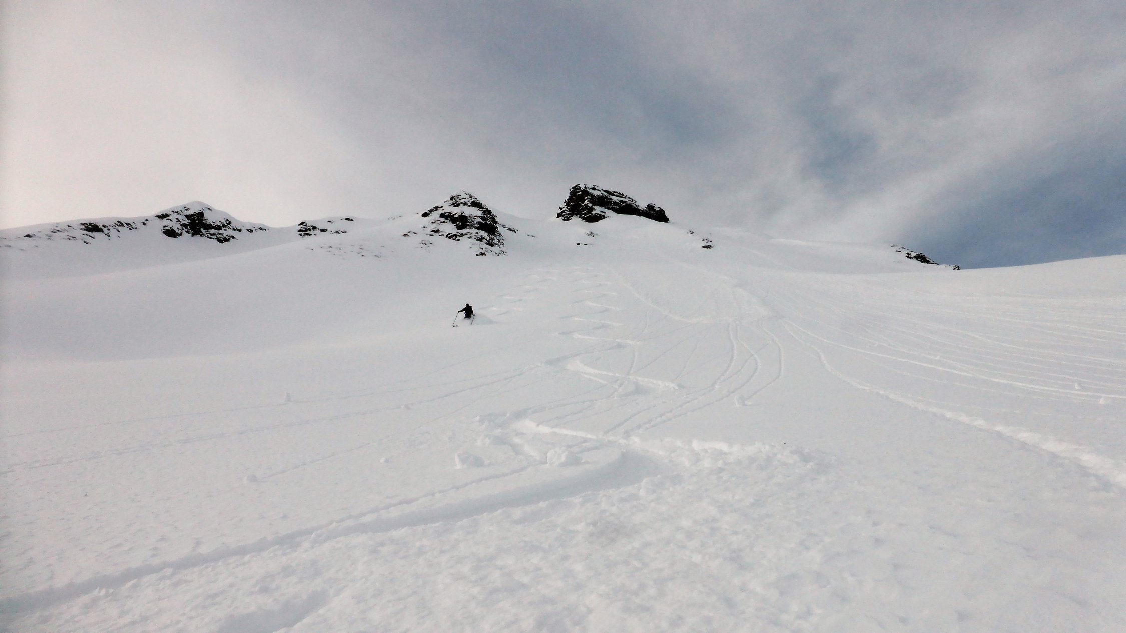 Toller Pulver in den Abfahrten, im Aufstieg zum Rotrüfner teils wind und bruchharst