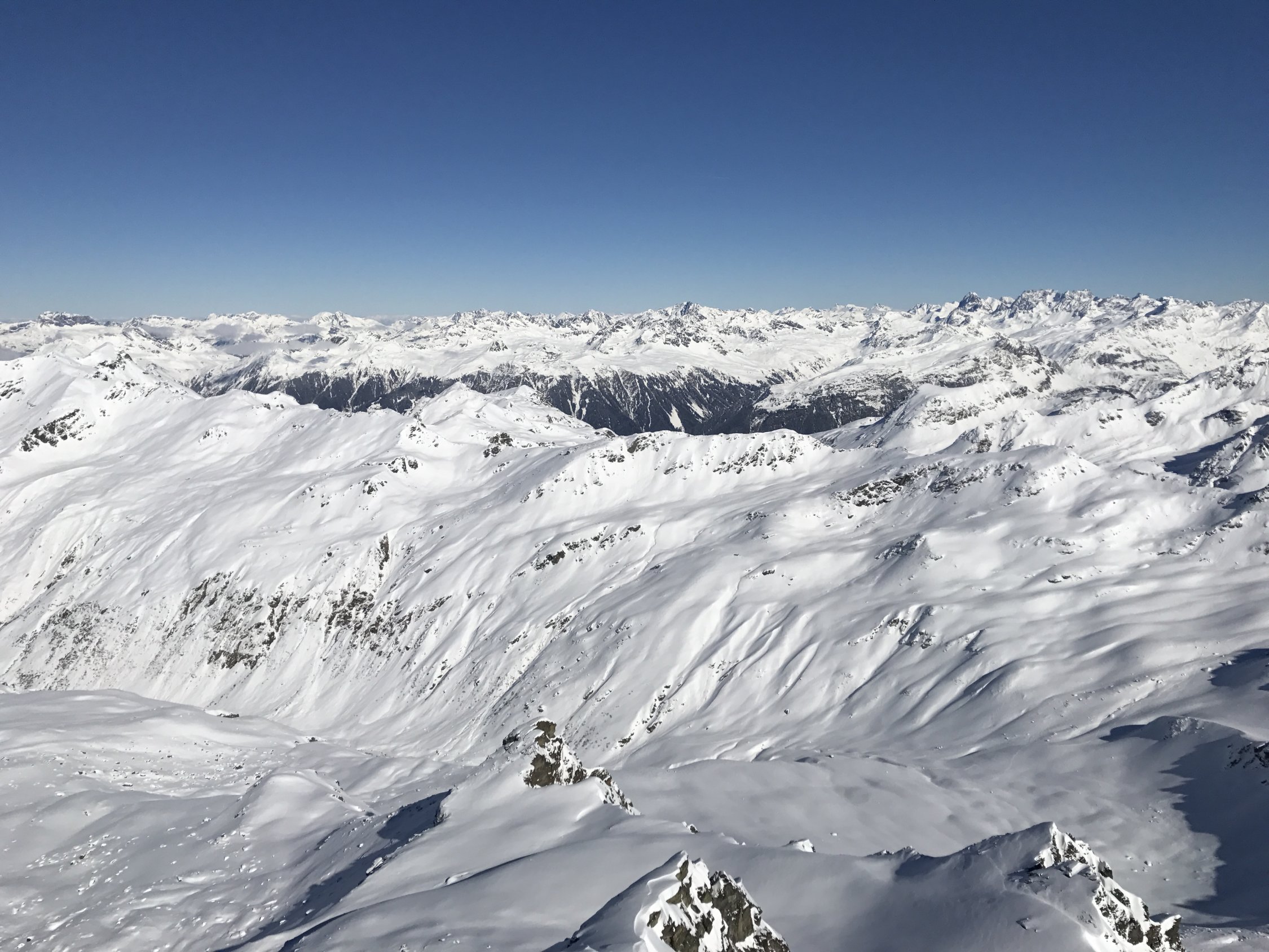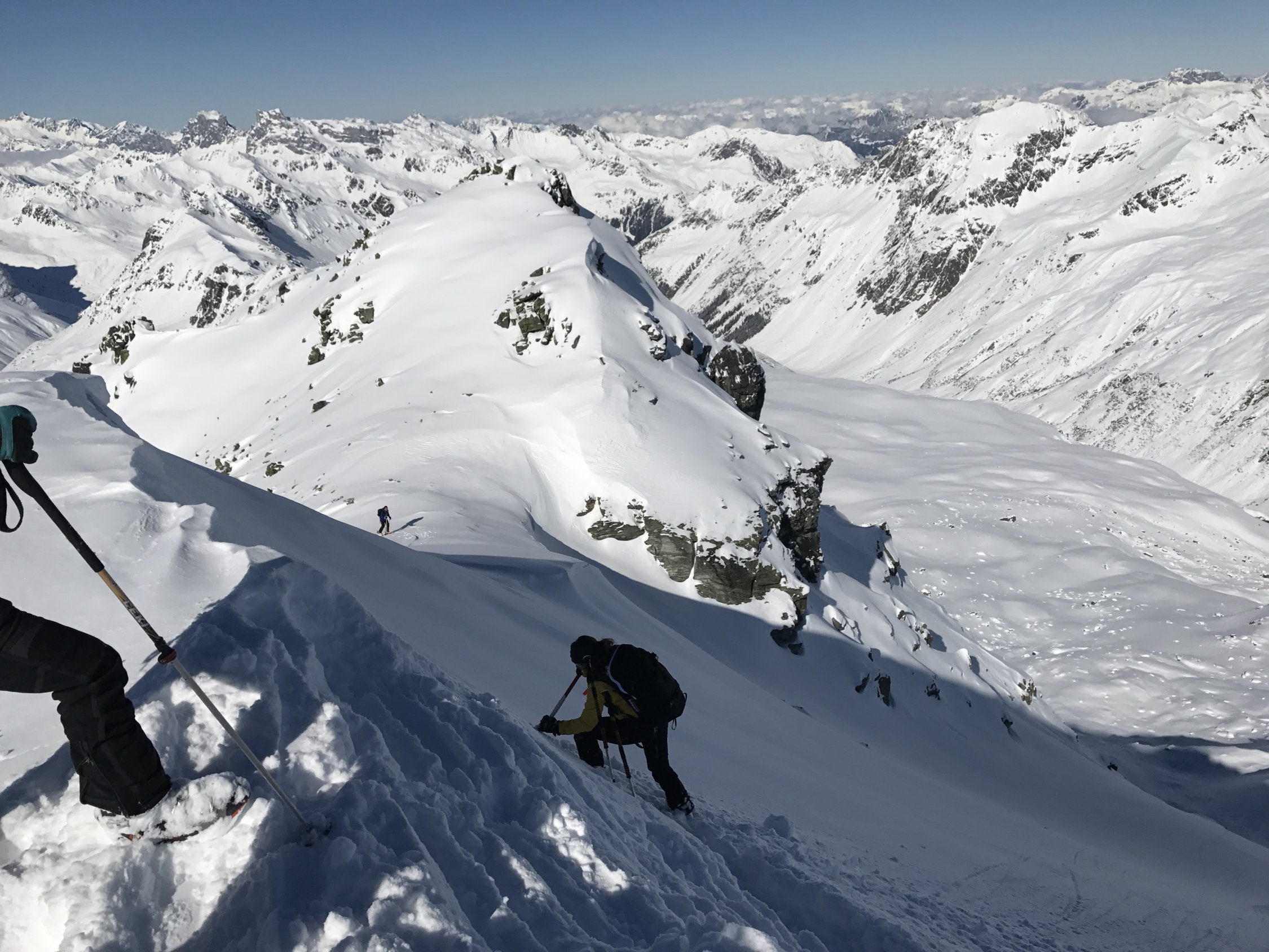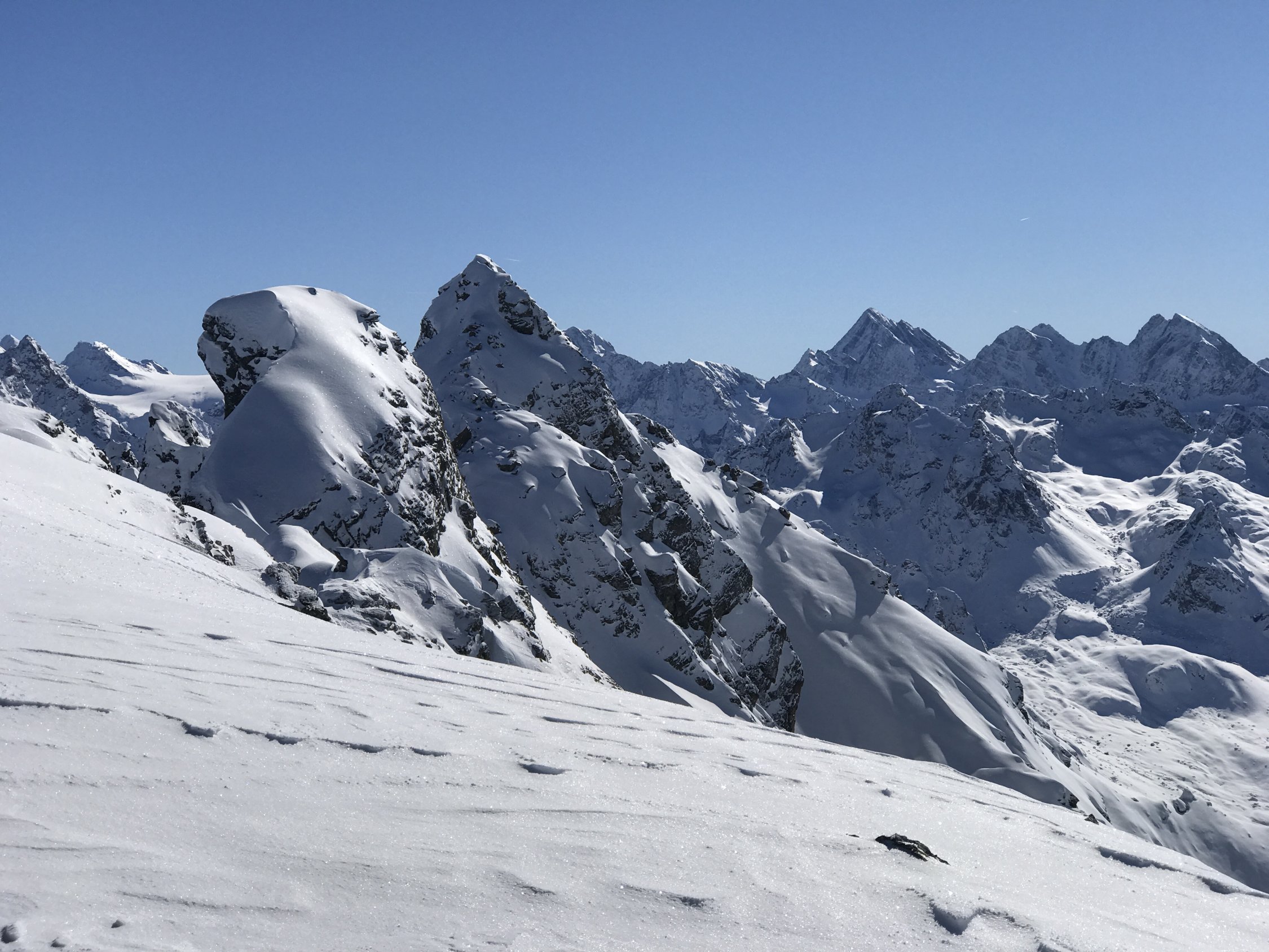 Schöner Pulverschnee (20 cm) vom Freitag! Trotzdem noch ein paar Steinkontakte beim Abfahren vom Gipfel ins Vergaldatal. Zurück nach Gargellen entlang der Aufstiegsspur zum Hinterberg - gute Alternative zum Rückweg entlang der Aufstiegspur im Wintertal/Zollhütte.