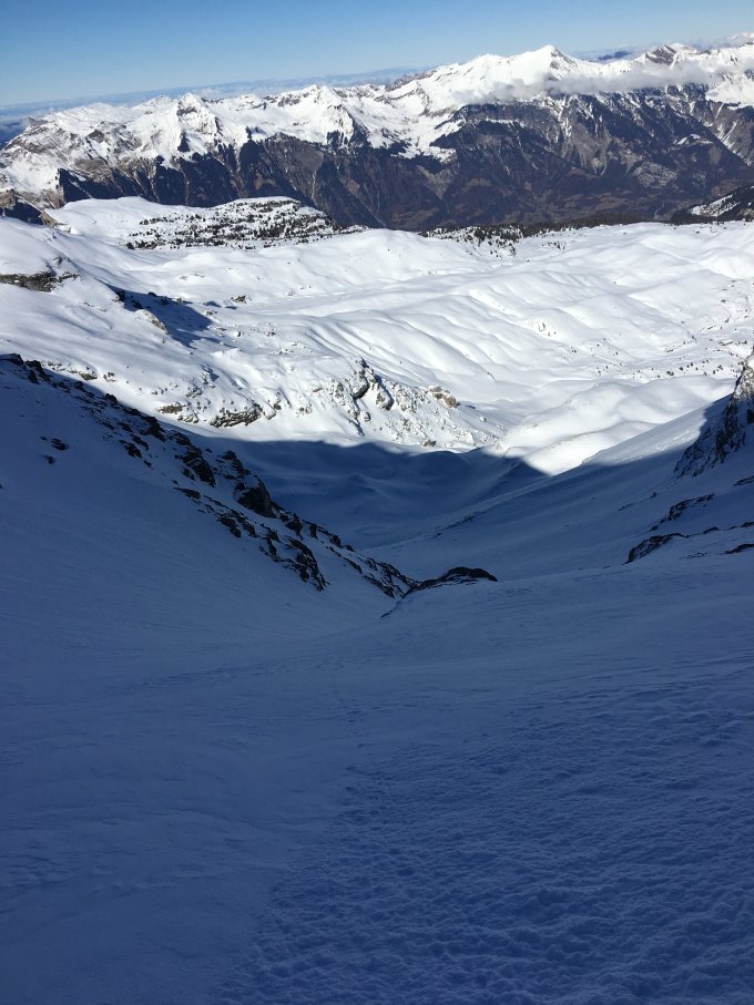Wir waren die einzigen drei heute in der Nord Abfahrt. ausgezeichnete Bedingungen oben. Direkte Einfahrt ohne Probleme möglich. Unten raus durchs Tal wird der Schnee mit jedem Meter miserabler. Die letzten 15 Minuten nach brämisegg mussten wir die Ski dann tragen. Die Top Bedingungen im oberen Teil lassen den eher bescheidenen Schnee weiter unten schnell vergessen...