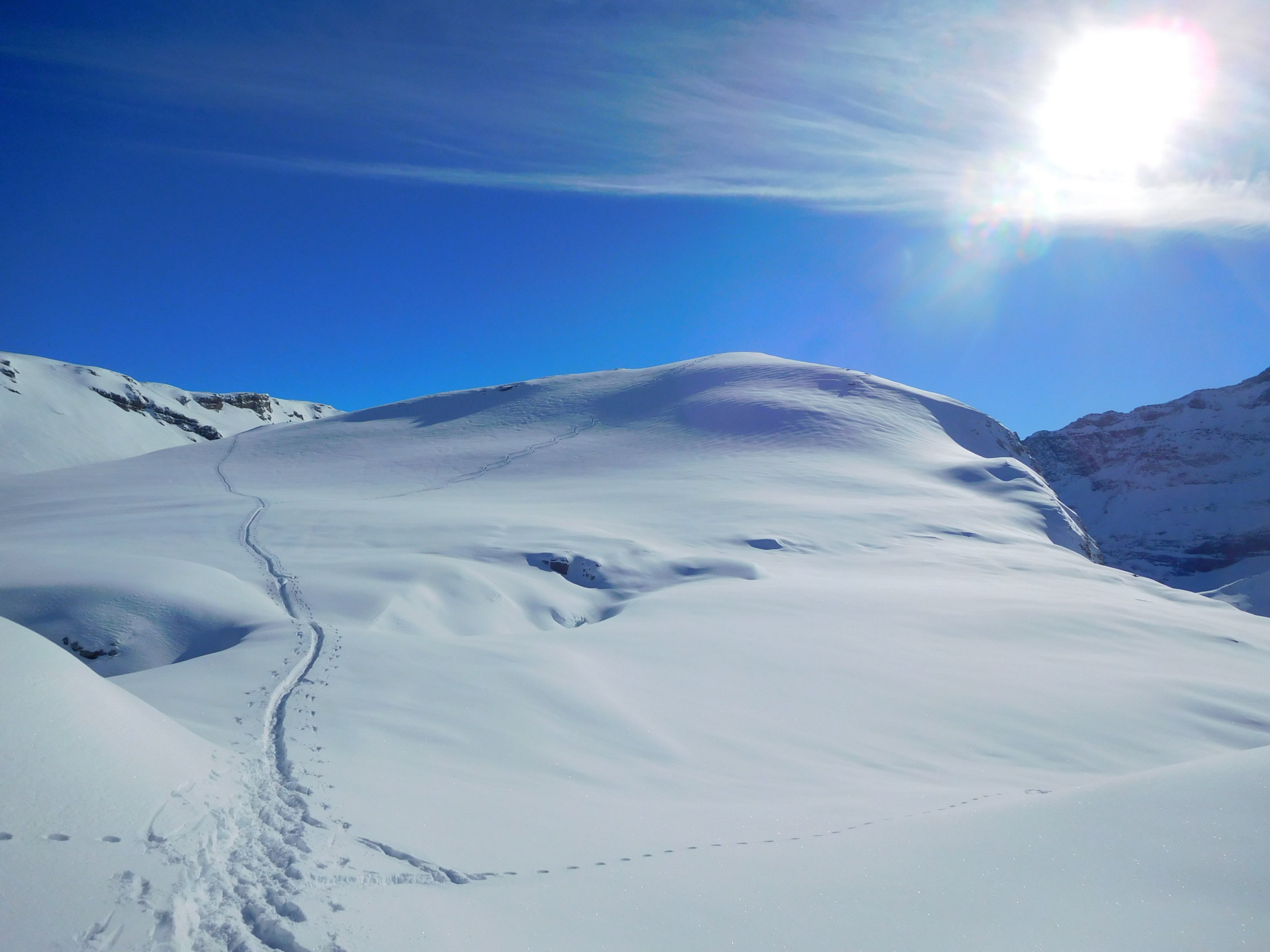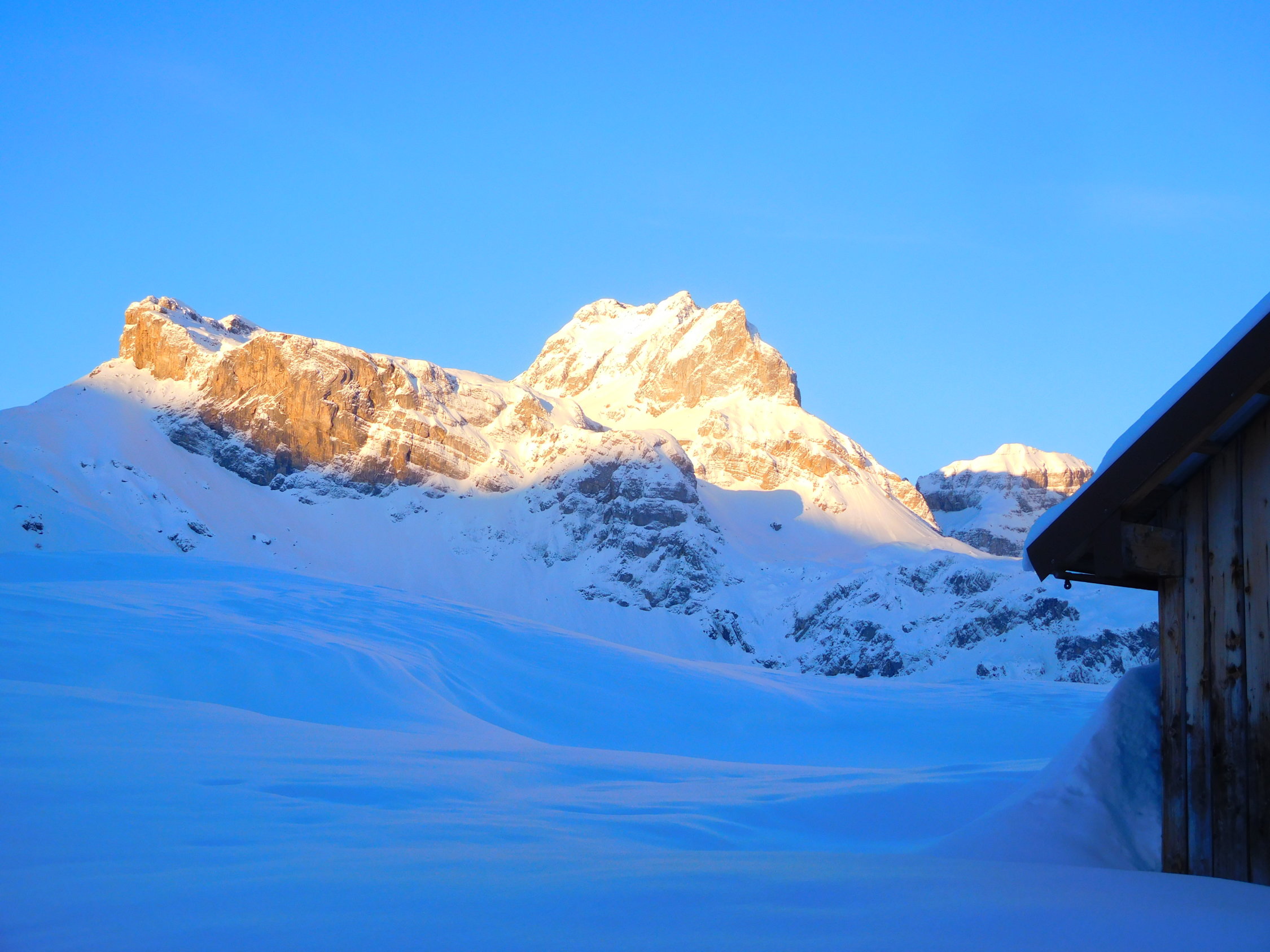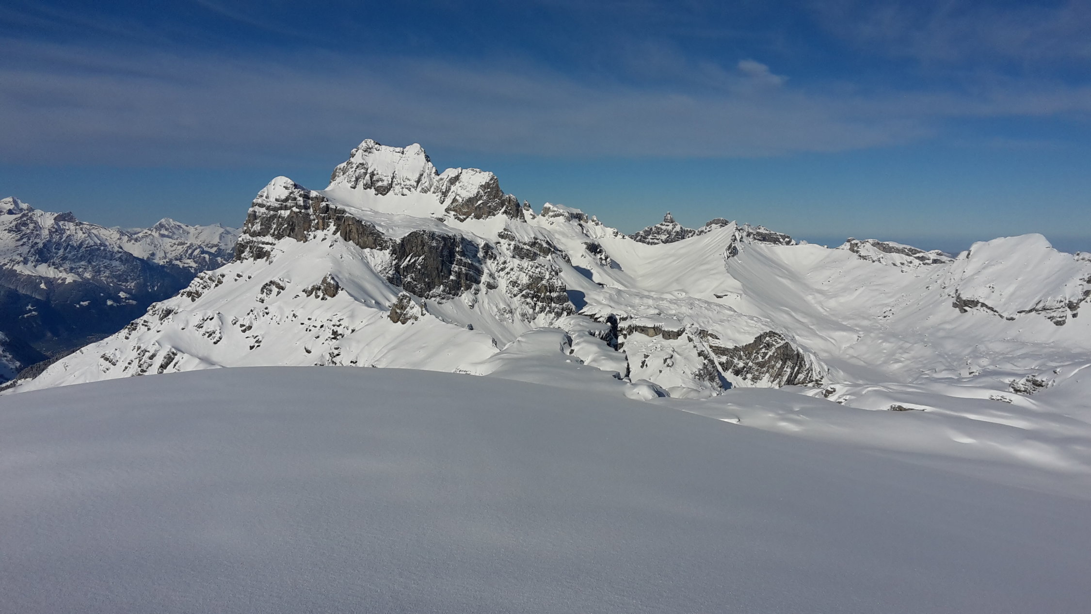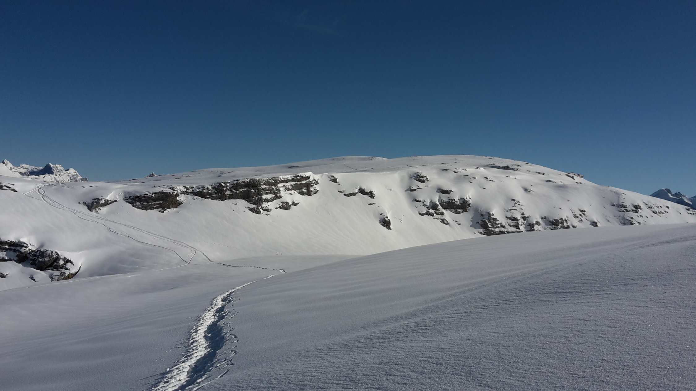 Start der Tour am 6.50 Uhr beim Sahli bei einer Temperatur von -3 Grad, der letzte Schneefall vom Vortag brachte 20-30 cm, danke dem Spurer vom Raustöckli, auch der Wind war heute kein Thema, kurz vor dem Gipfel einige Stellen ohne Unterlage,