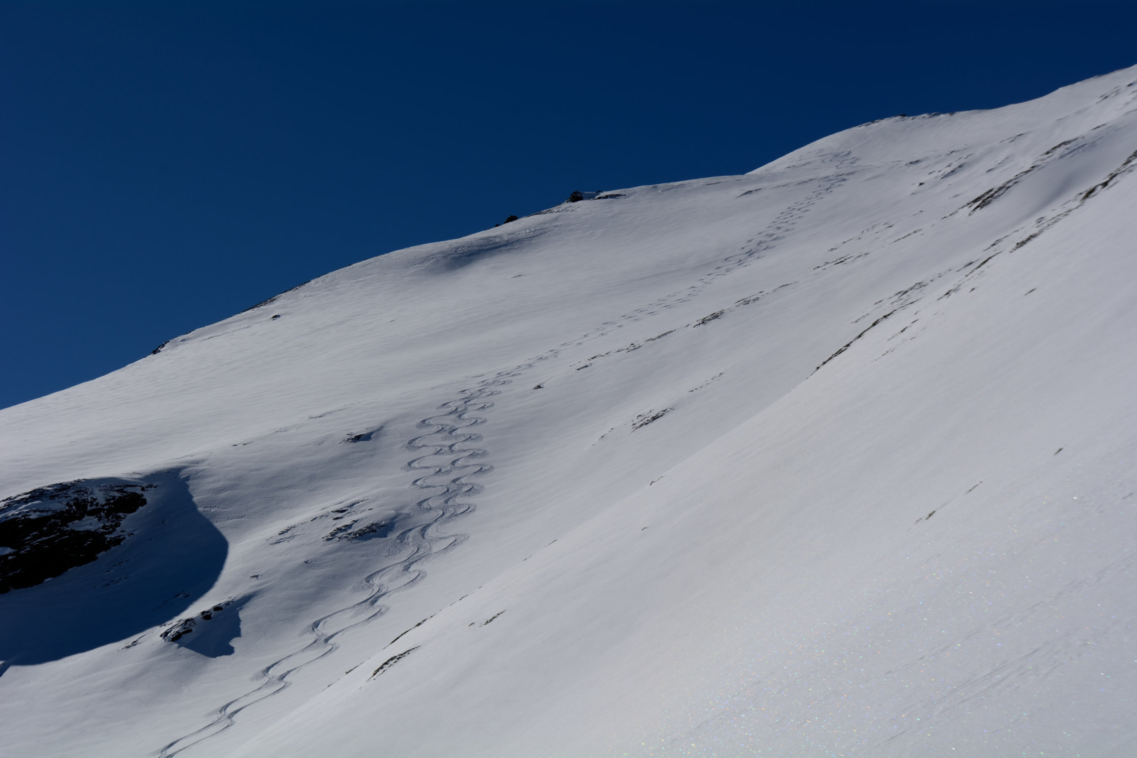 Vom Schnee her war die Abfahrt ins hochwinterlich eingeschneite Carnusatal ein Highlight. Powder vom Feinsten von oben bis unten. Von der Lawinensituation her waren die Verhältnisse nicht ganz unproblematisch (v. a. die Hangtraversierungen vor und nach der Tritthütte).