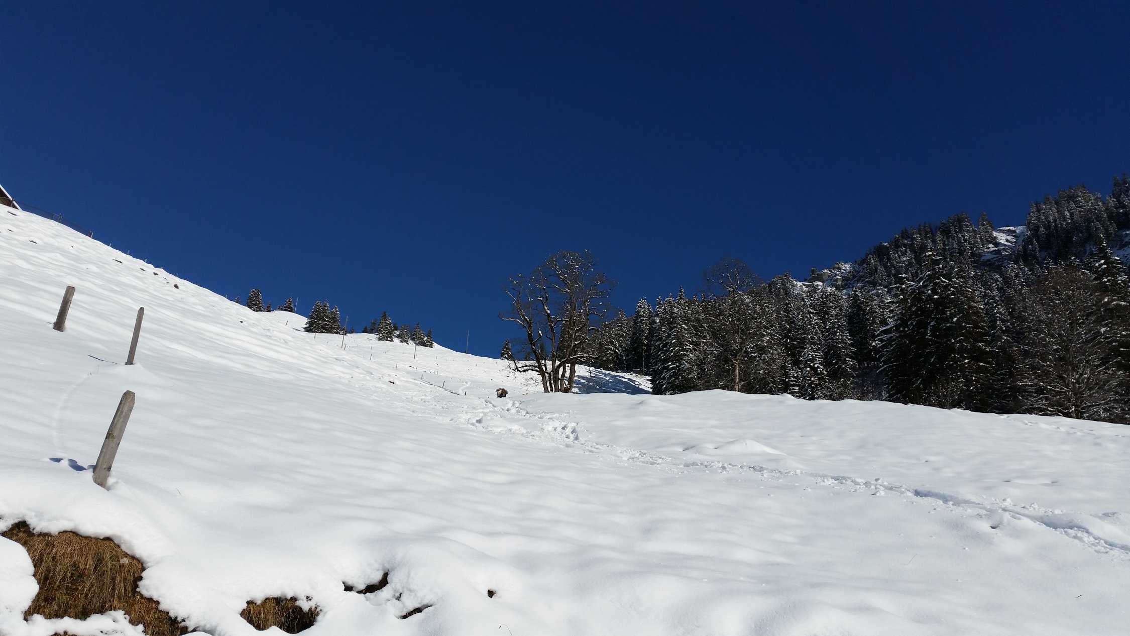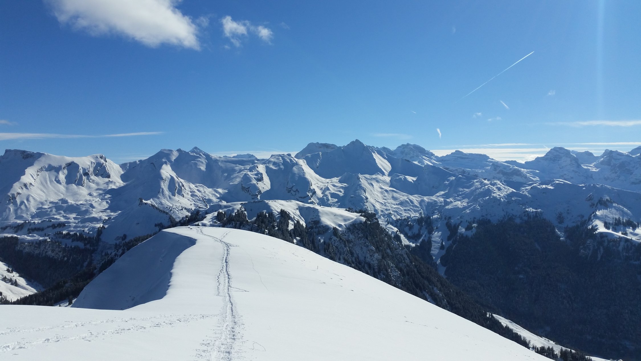 Schnee hat es genügend aber nicht übermässig. Es gab Leute, die versuchten, ohne Schneeschuhe aufzusteigen, die mussten aber beim Bleikigrat umkehren