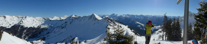 Wolkenloser Himmel, gute Fernsicht, 25 cm Neuschnee, Pulverschnee von oben bis unten. Es waren sehr viele Tourengänger unterwegs. Die Hauptabfahrt war schon sehr zerfurcht, daher wählten wir die Abfahrt auf den Nordhängen unterhalb der Mutabellaspitze.