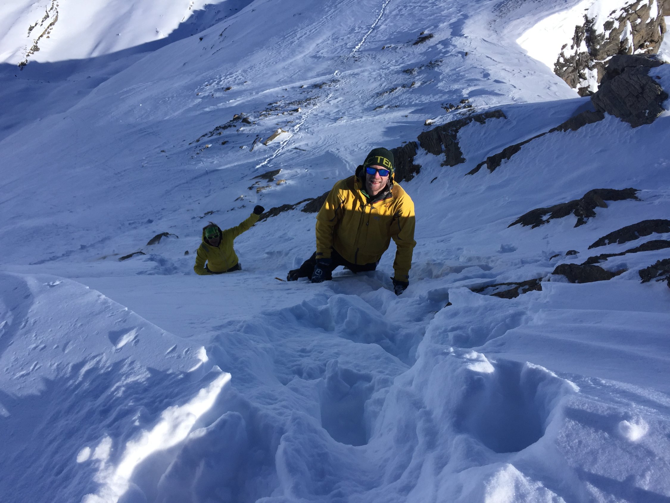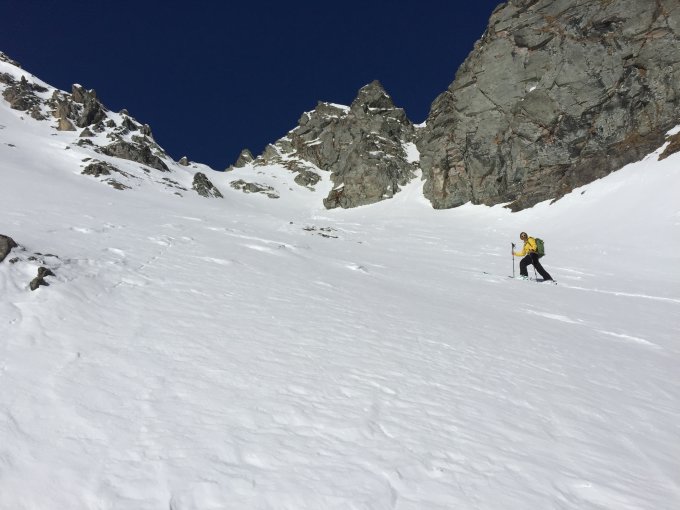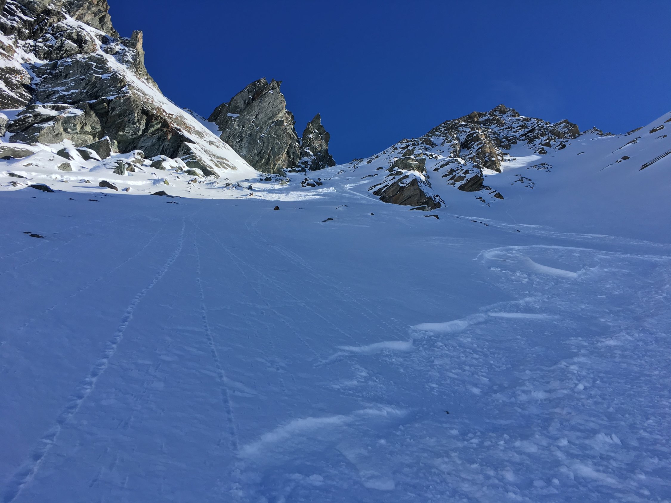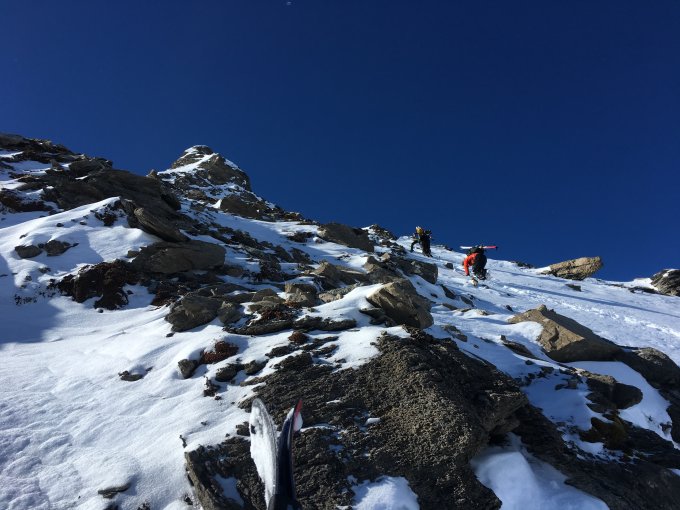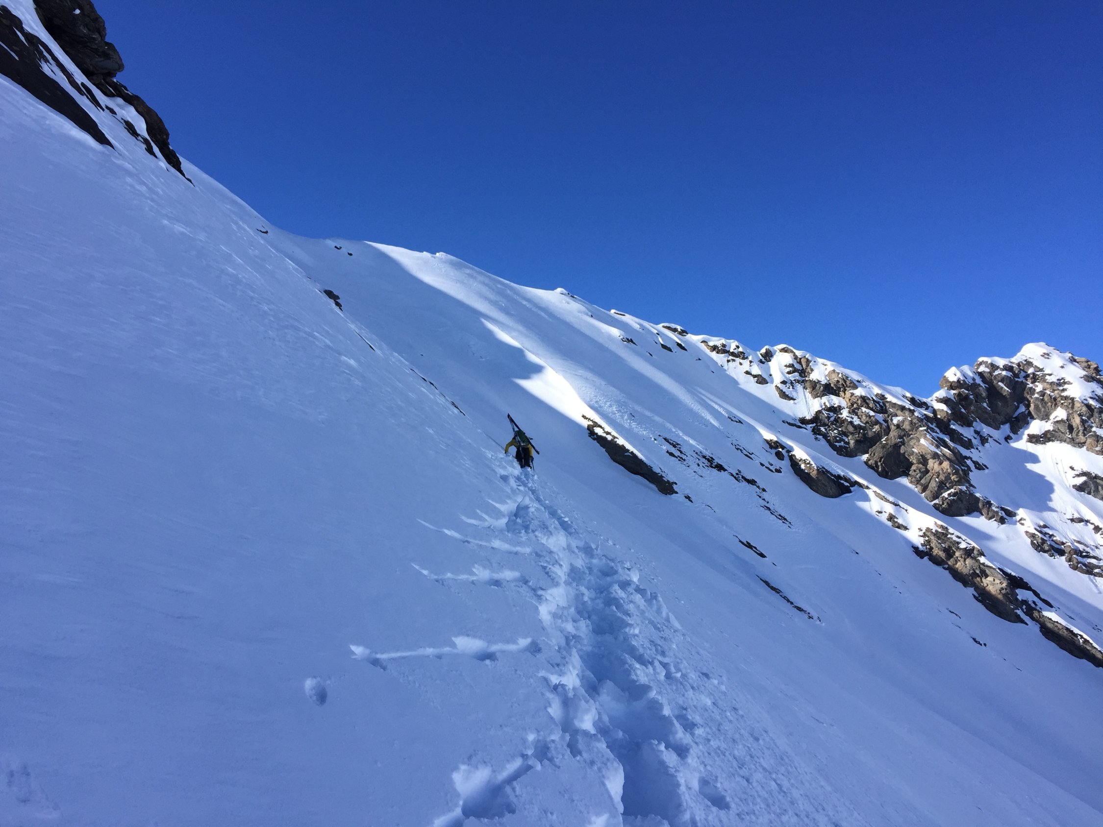 Die N-Abfahrt im Pulverschnee bis zum erneuten Aufstieg zur Satteltilücke im war ausgezeichnet. Der Aufstieg in die Satteltilücke zog sich mit dem wenigen und Lockeren Schnee in die Länge.