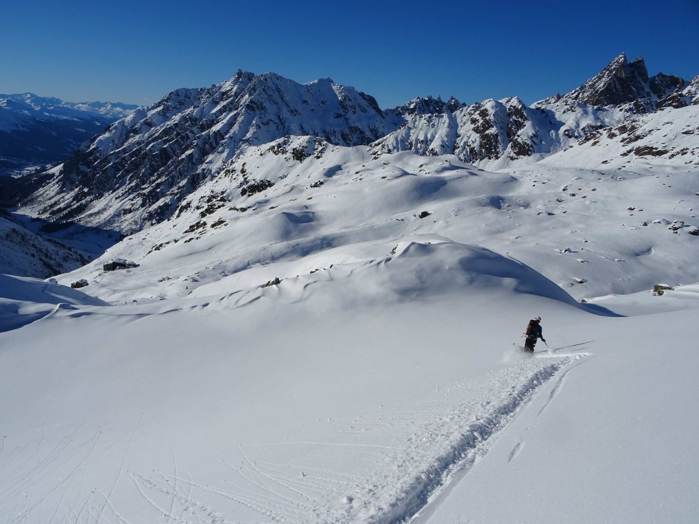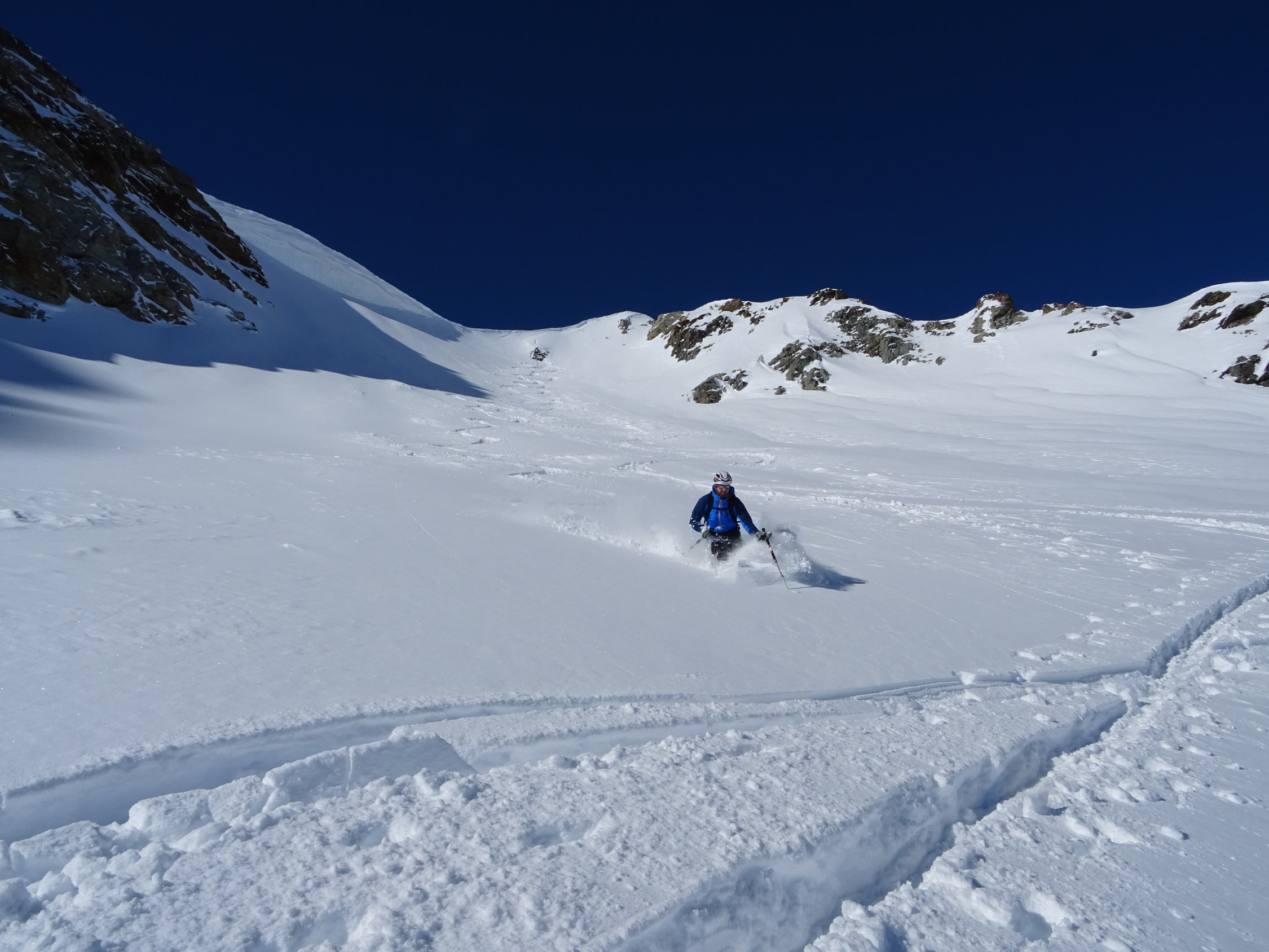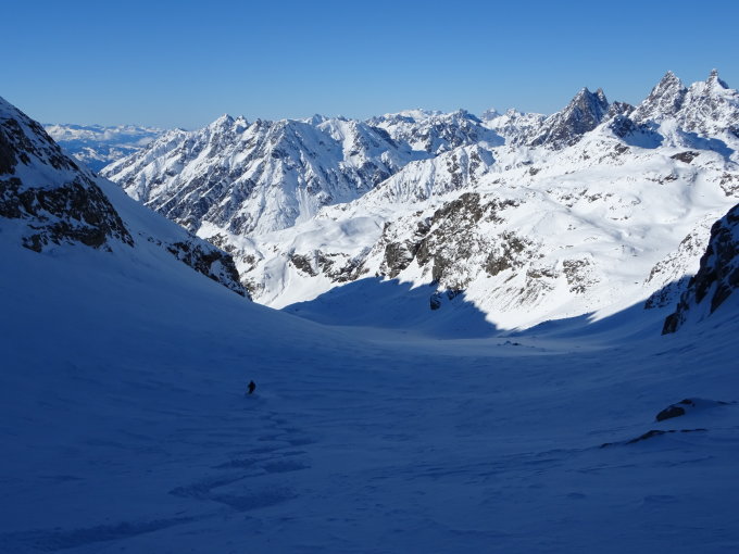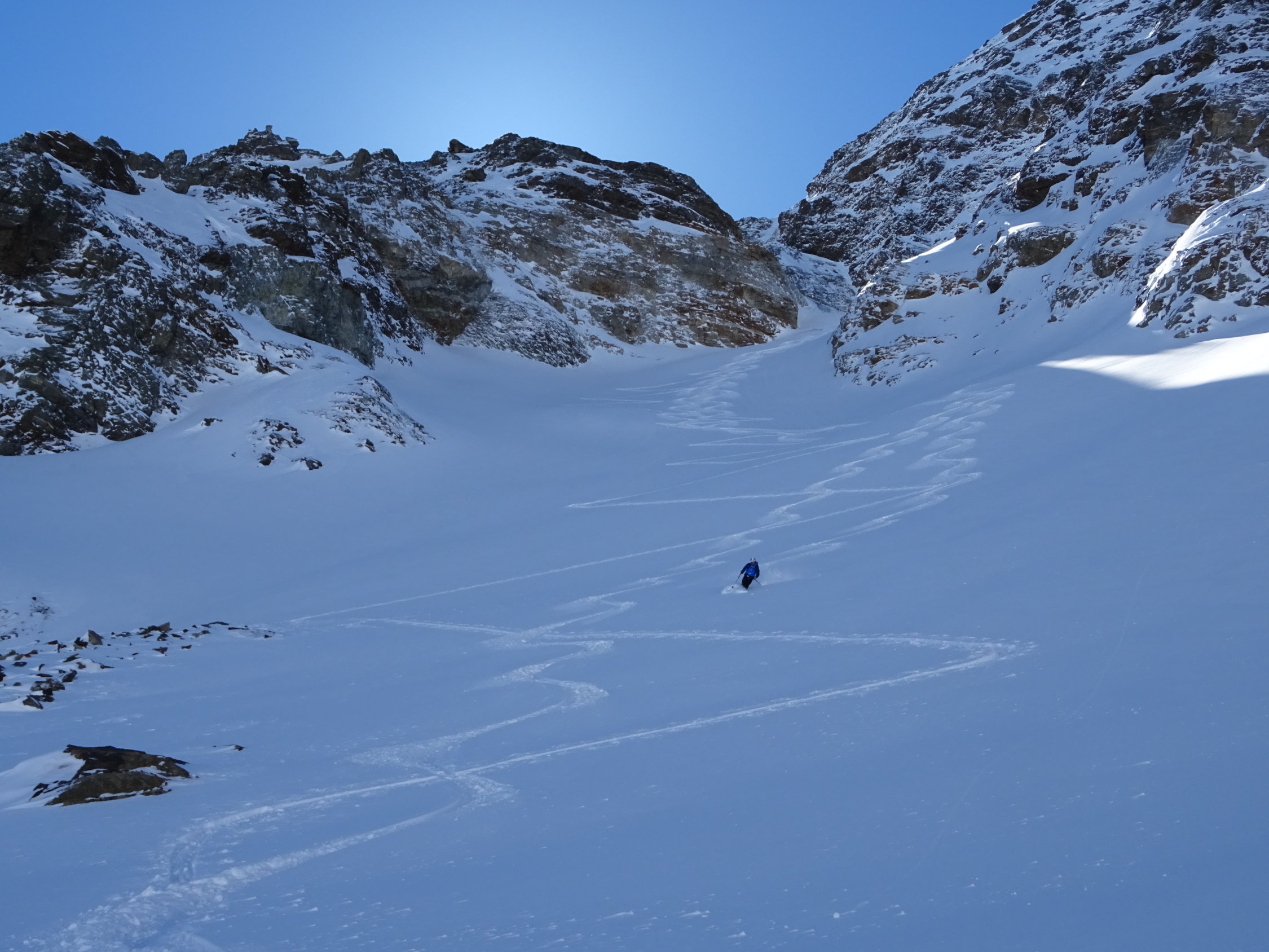 Spannende ÖV- Tour die uns alle Optionen offen liess. Den Start-und Endpunkt der Tour war klar, aber welche Route und welcher Gipfel liessen wir offen. Obwohl den Gipfel nicht ganz erreicht, war es von den Schneebedingungen die Top-Tour dieser Saison. Jeder einzelne Schwung war Pulver-gut. Einmalig.