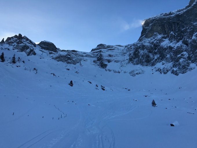 Abfahrt: Sehr verfahren, kleine Pulverhänge dennoch vorhanden.